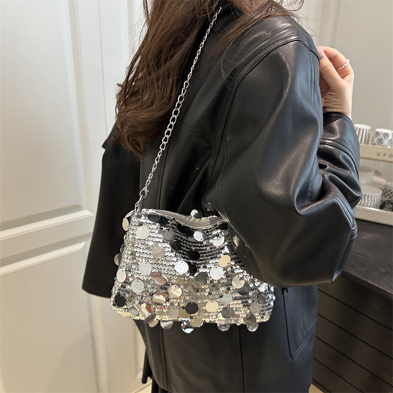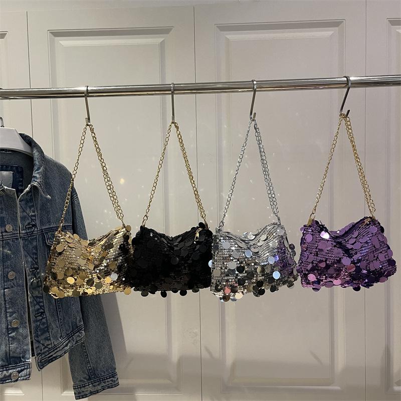 高级质感小方包休闲百搭女士单肩包斜挎包批发跨境时尚亮片链条包