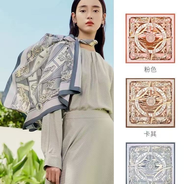 | 颜色 | 双面印花大方巾-鹤鸣秋色米色 | 颜色 | 双面印花大方巾-孔雀阁粉色 |