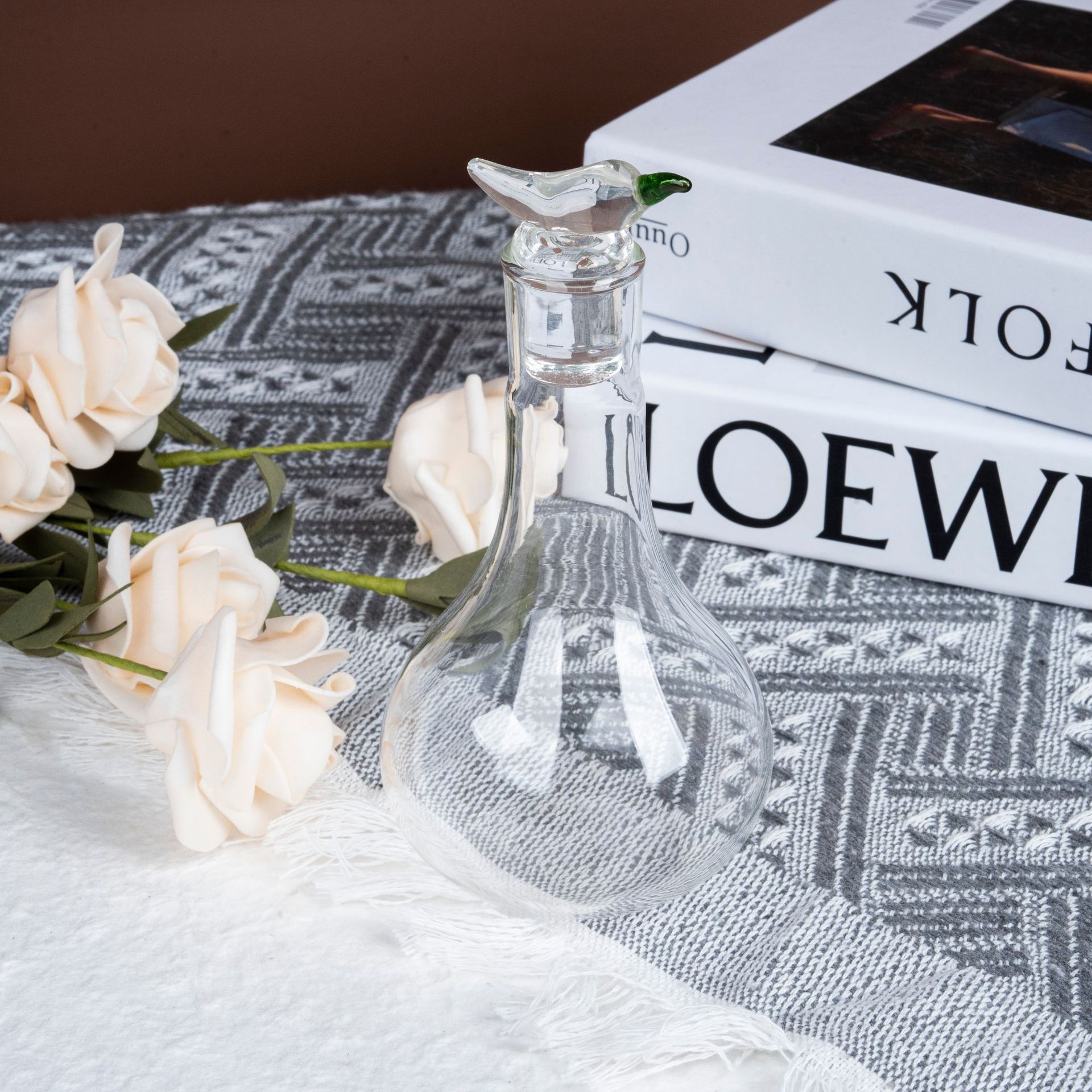 手工玻璃调味瓶 创意辣椒盖油壶 透明耐热调料罐 厨房餐厅艺术摆
