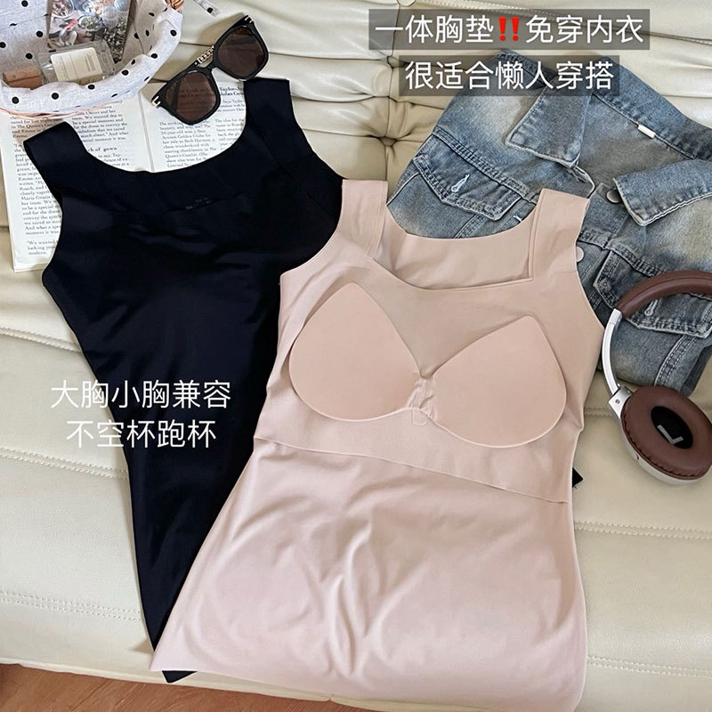 冬季无痕背心上衣修身百搭带胸垫一体式可外穿内搭打底保暖内衣女