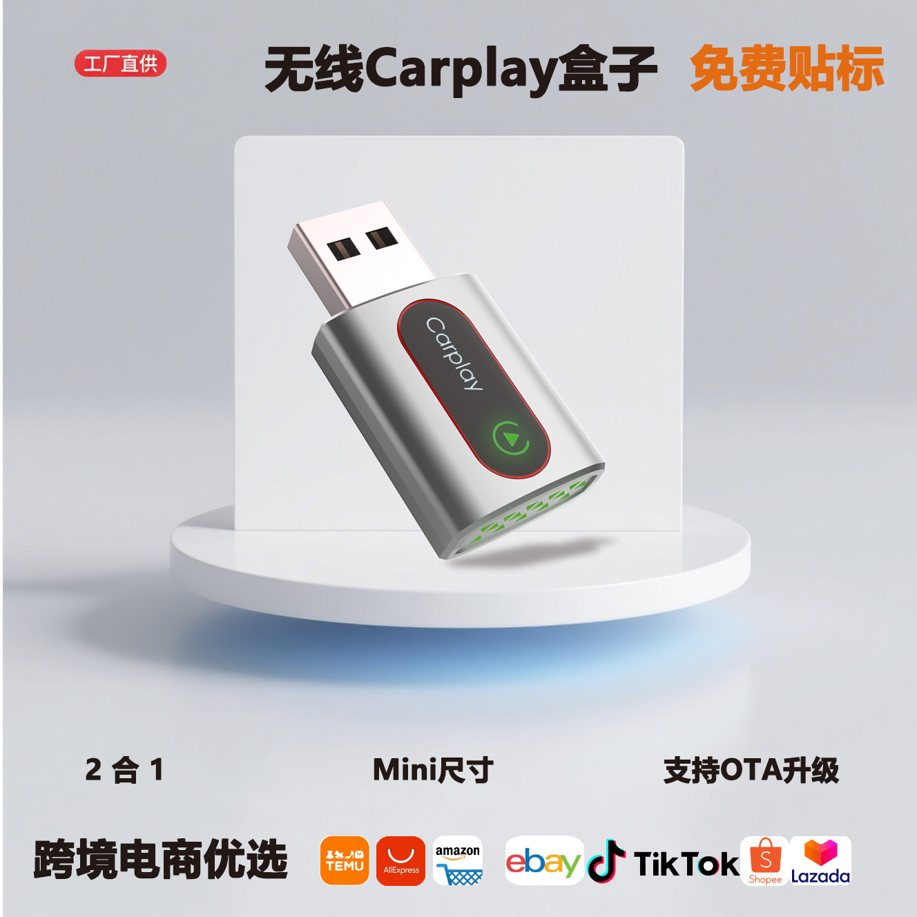 跨境USB无线Carplay智能车载盒子适用iPhone安卓Android Auto盒子