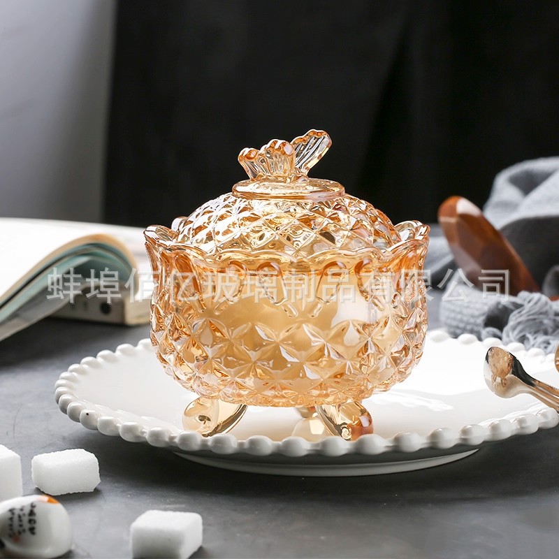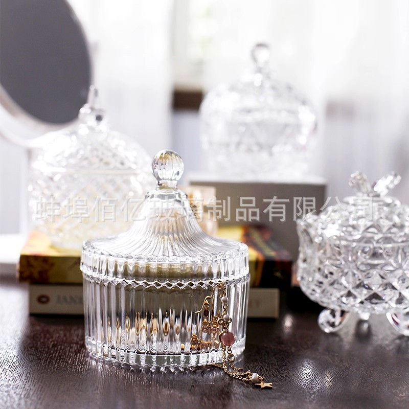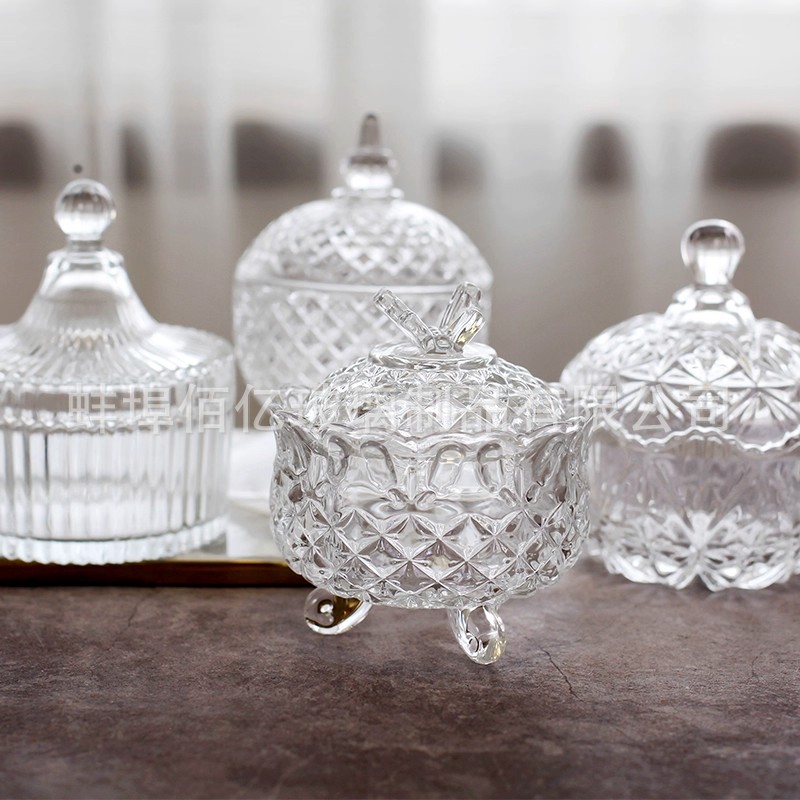 欧式透明水晶玻璃糖果罐带盖零食瓜子首饰储物收纳罐糖缸香薰烛台