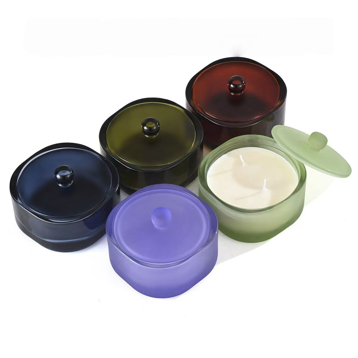 绿色大号超厚四方圆角野兽派蜡烛杯空杯家居装饰香薰玻璃罐烛台