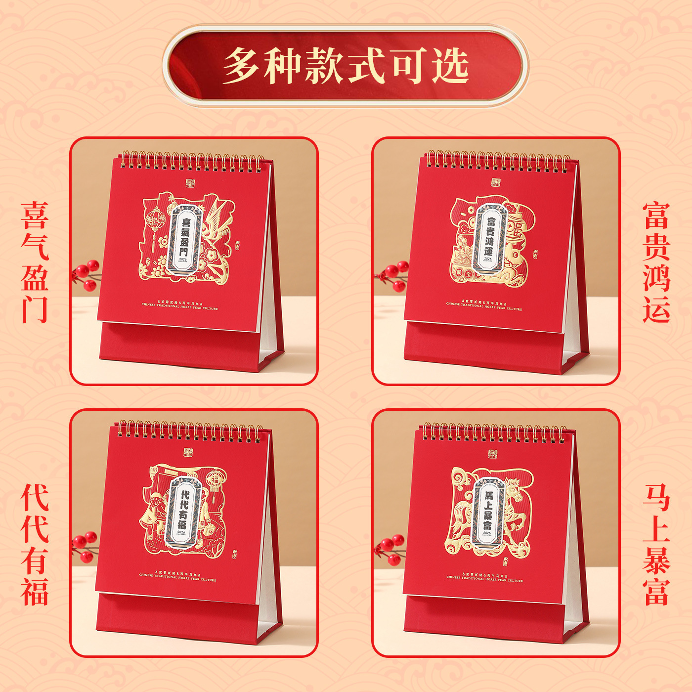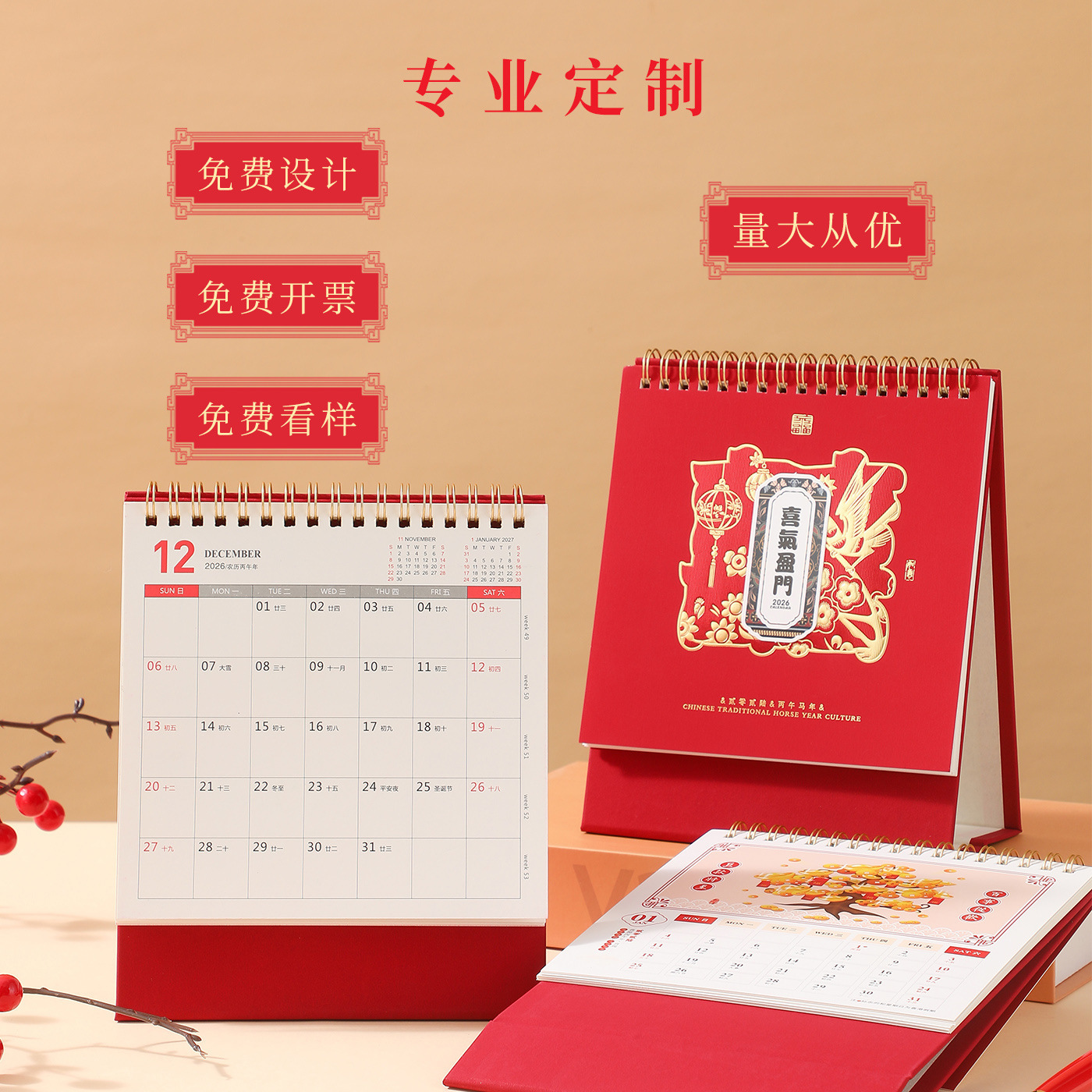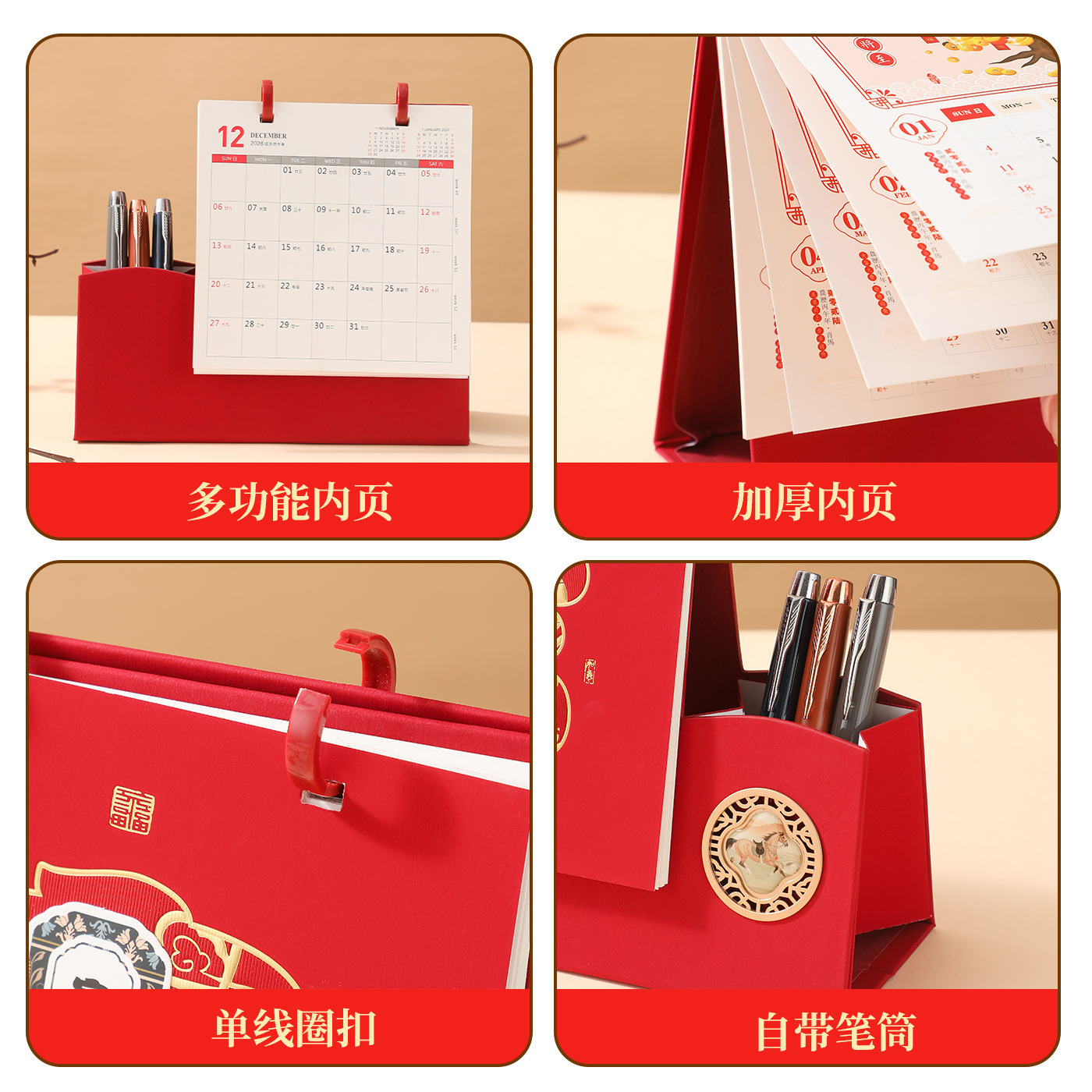 2026马年台历商务笔筒创意桌面摆件企业宣传计划本广告加LOGO定制