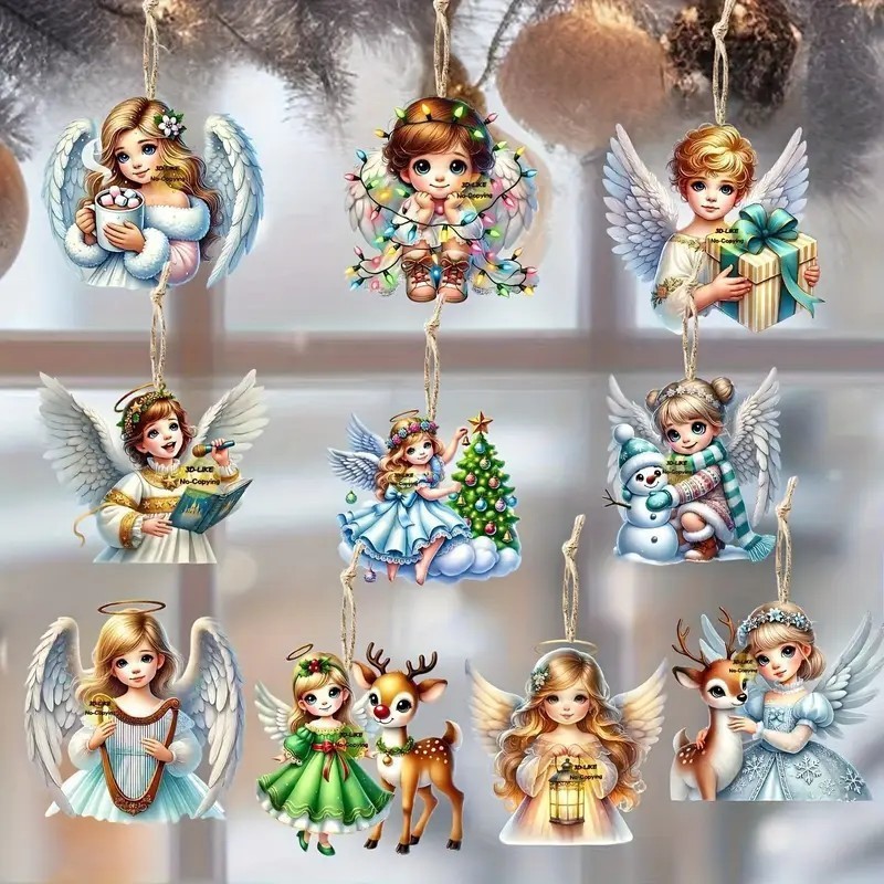 跨境新品木质圣诞天使梦幻仙子挂饰创意圣诞天使装饰吊坠圣诞节圣