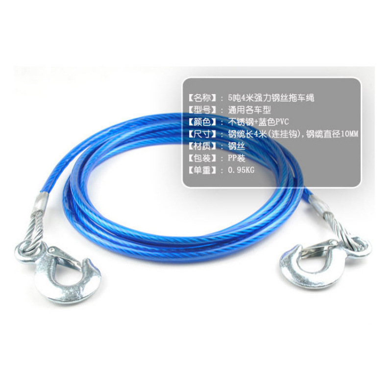 厂家直销 牵引绳 5吨4米拉车绳 4*10MM加粗加大 汽车钢丝拖车绳