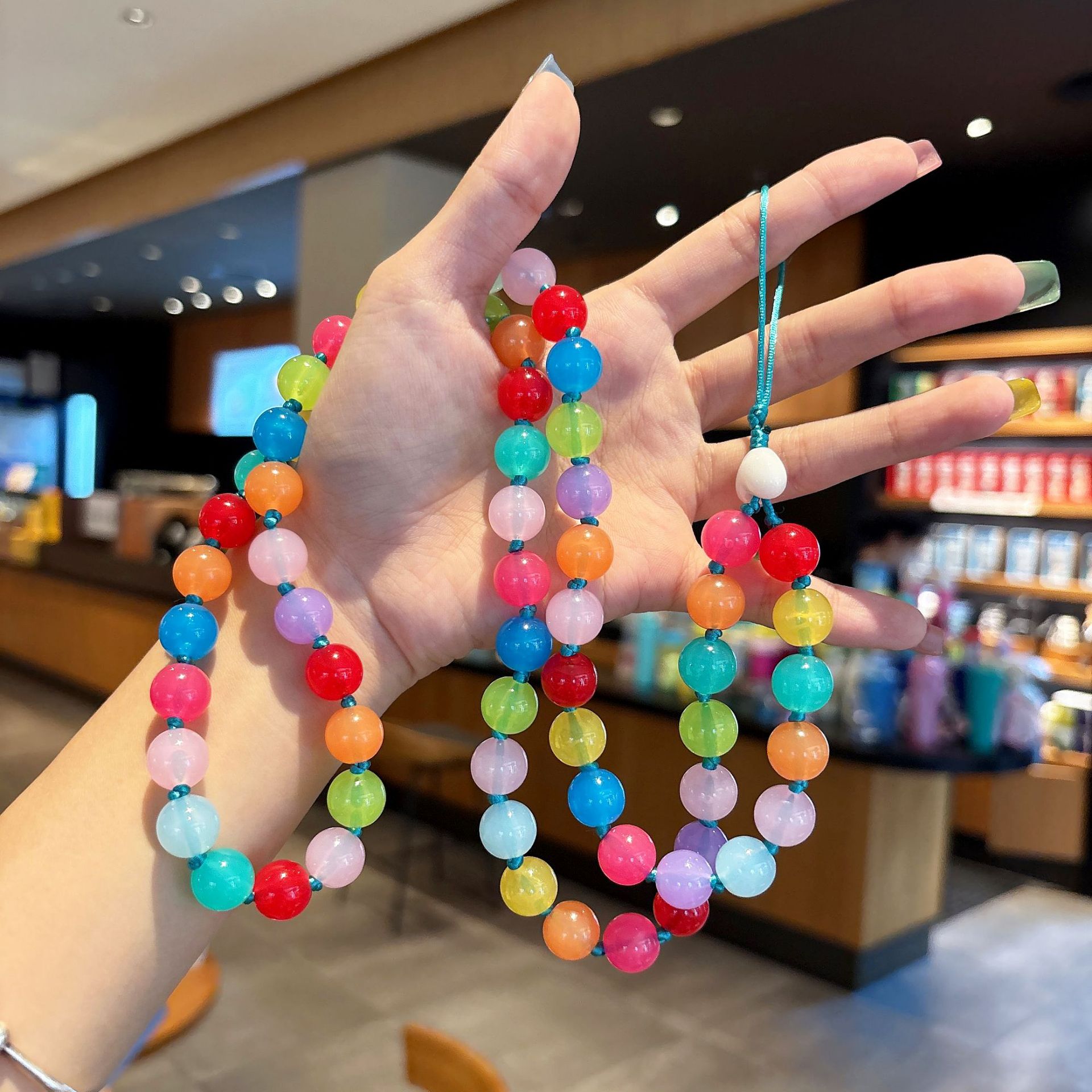 时尚小众彩色挂脖手机挂绳 简约轻奢不夹头发爱心挂脖手机链纯色