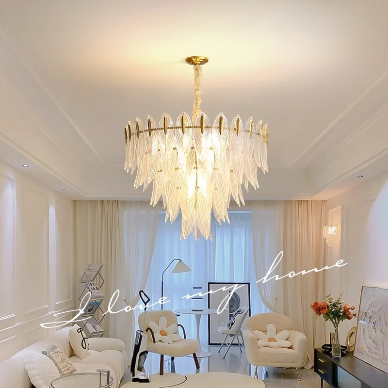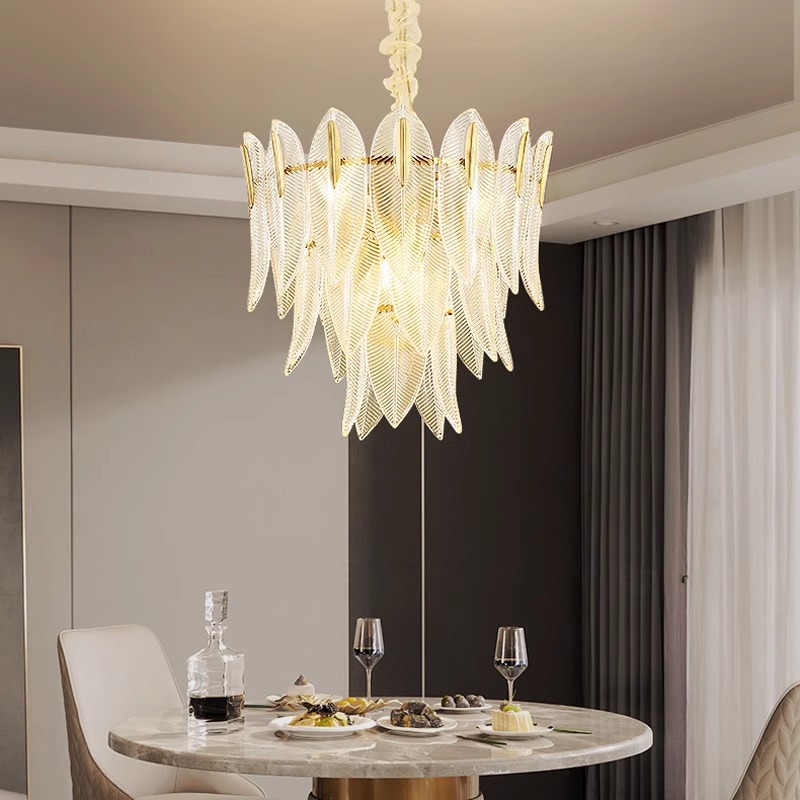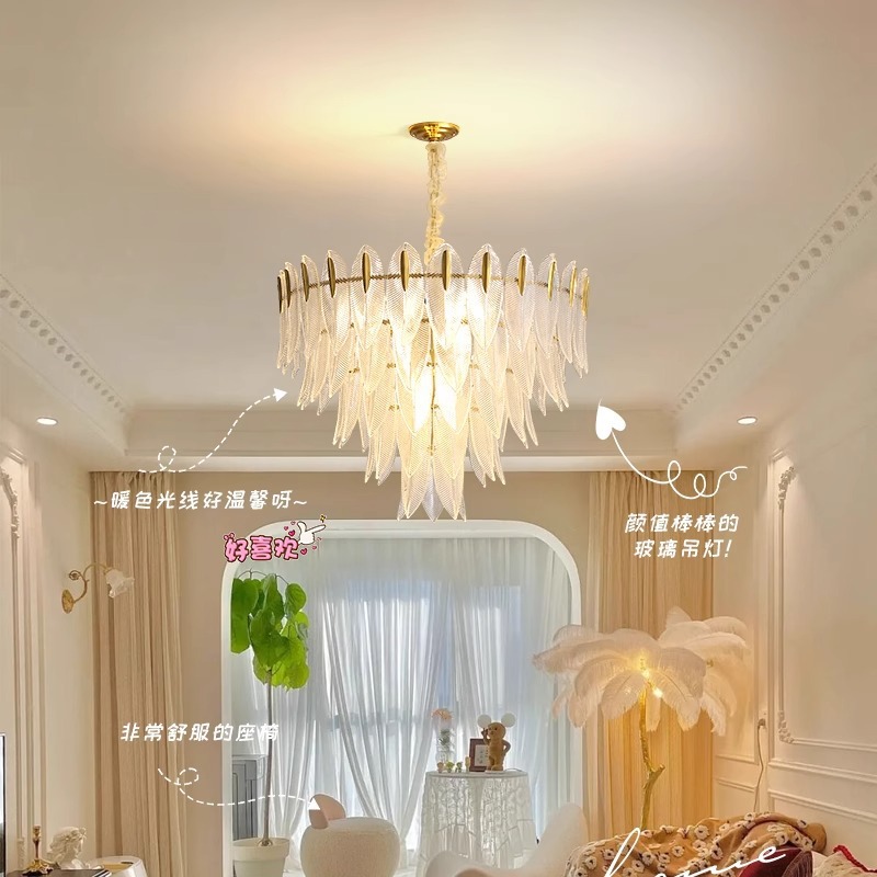 轻奢创意个性羽毛灯现代简约高端卧室别墅水晶玻璃餐厅客厅主吊灯