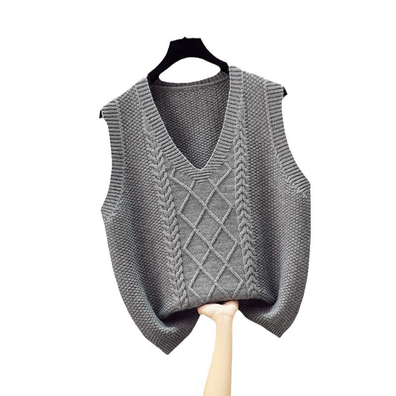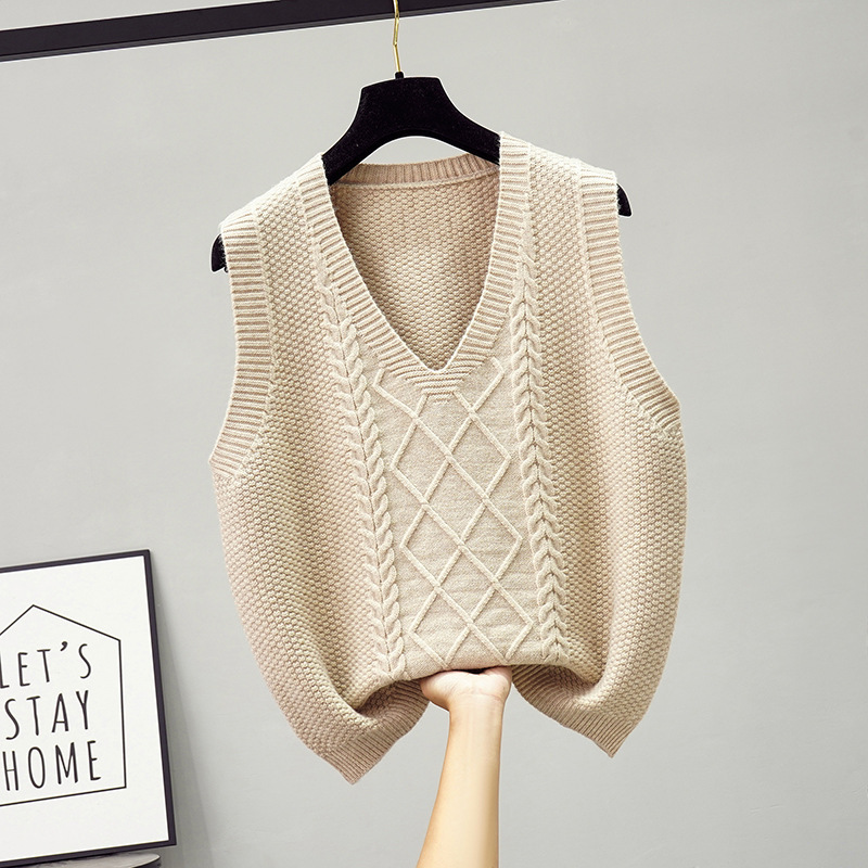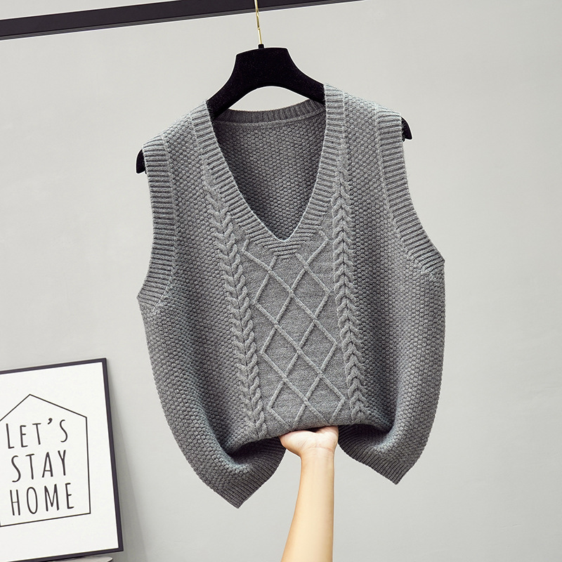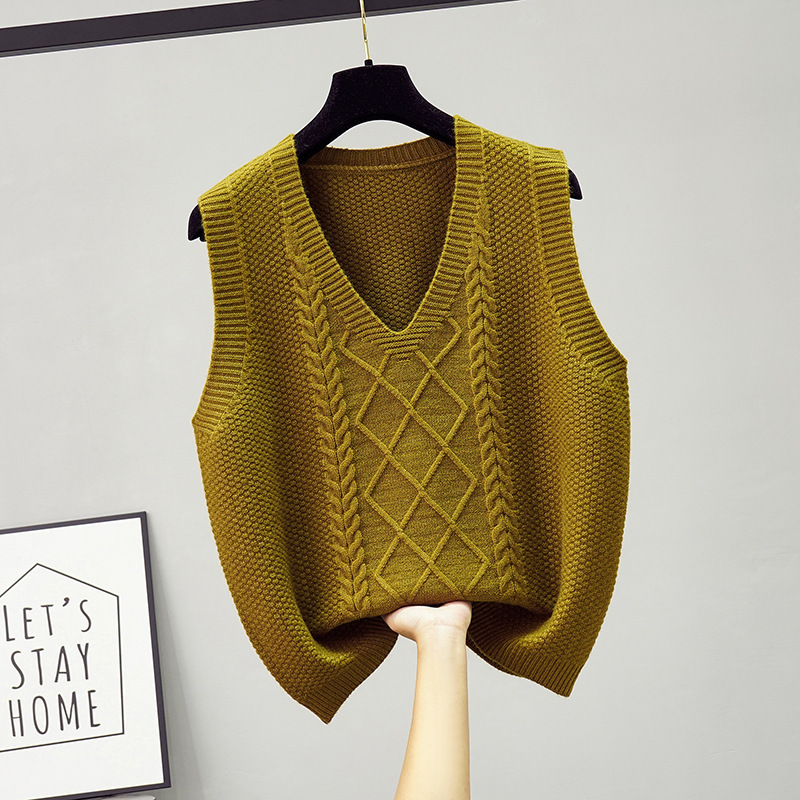女式休闲马甲背心春秋新款复古纯色V领衬衫叠穿无袖针织宽松毛衣