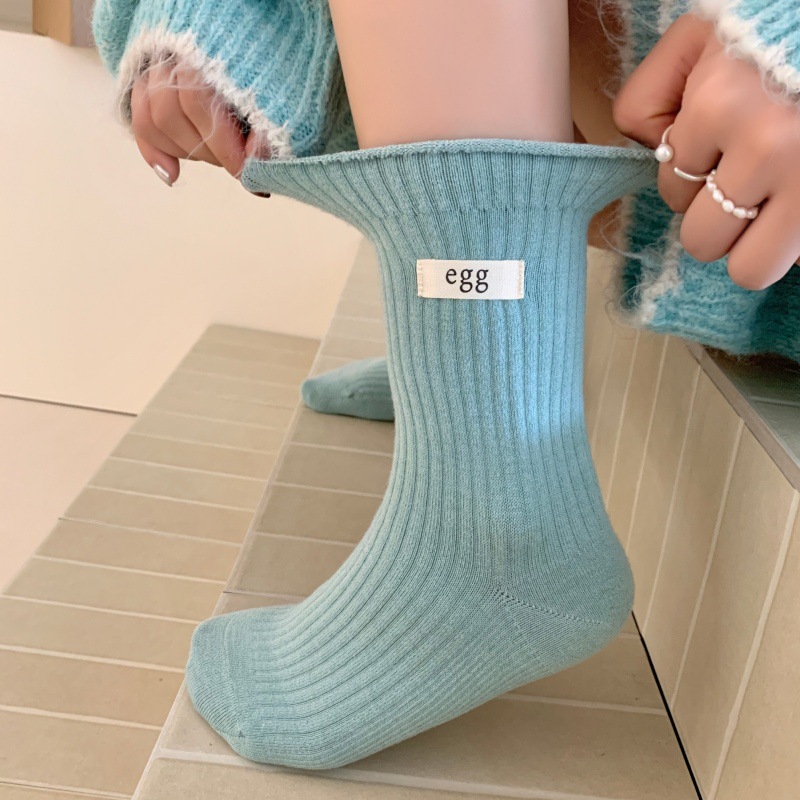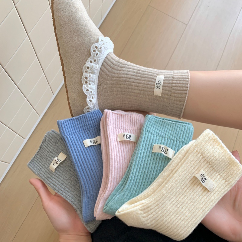 25冬季新款仿羊毛中筒袜egg字母保暖袜子 清新学院风微压堆堆袜女