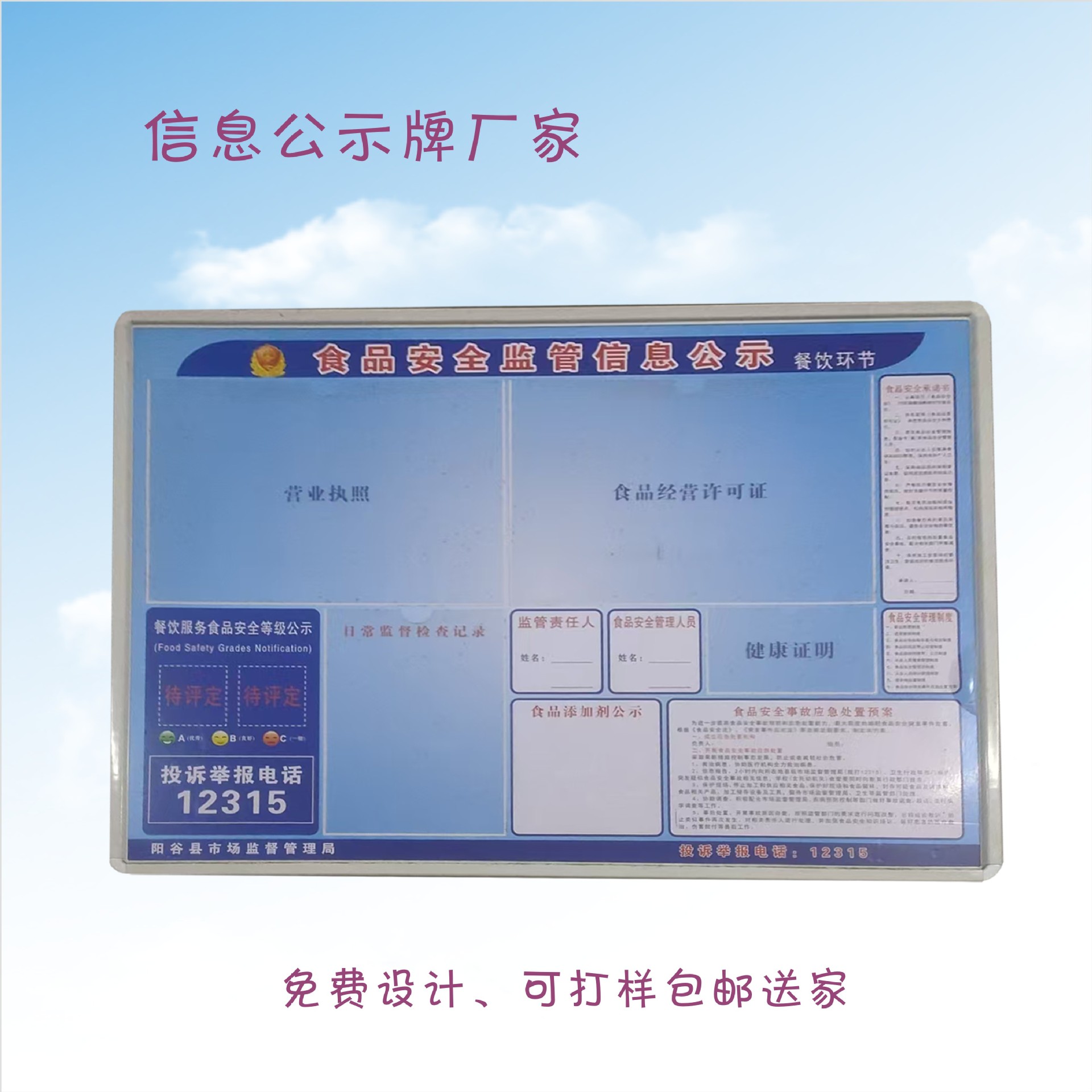 供水卫生管理公示栏餐饮服务卫生许可公示栏烟草专卖许可证公示牌