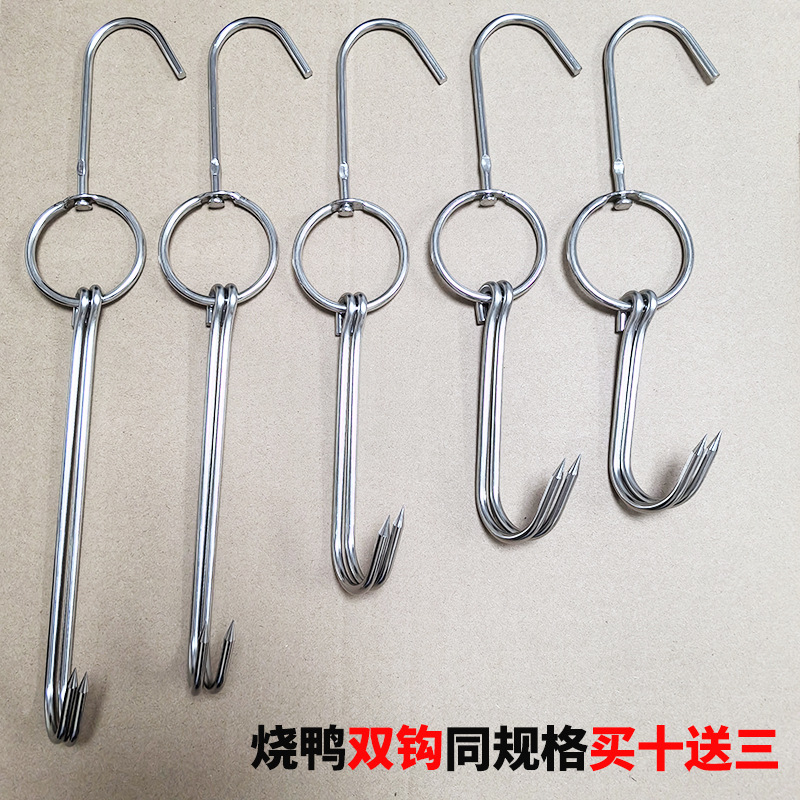烤鸭挂钩烧鸭勾子烤鸭专用挂钩双钩不锈钢烤鸭勾商用烧腊环烤鹅钩