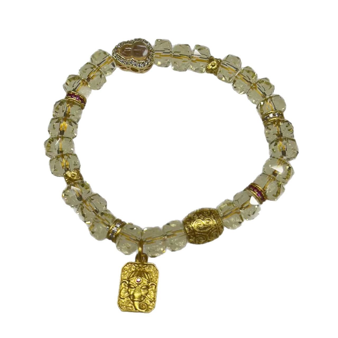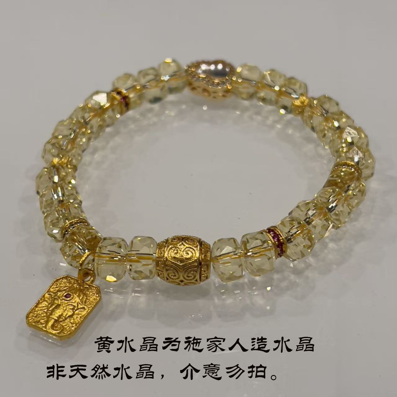 八星聚财切面黄水晶葫芦招财手串女生古法金扎基拉姆转运串珠手链