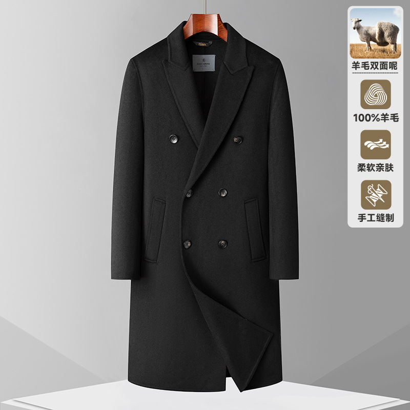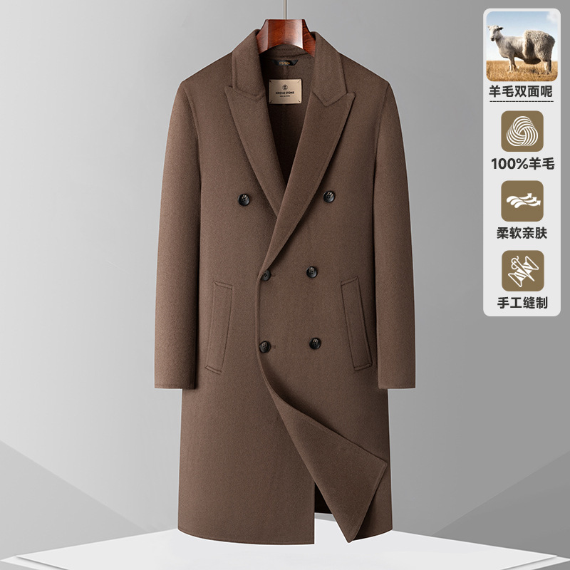 秋冬100%羊毛呢大衣双排扣长款手工双面双挂面呢大衣风衣呢子外套