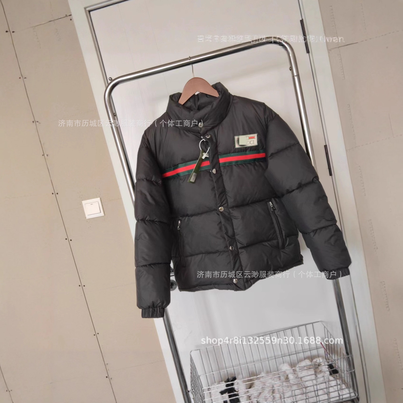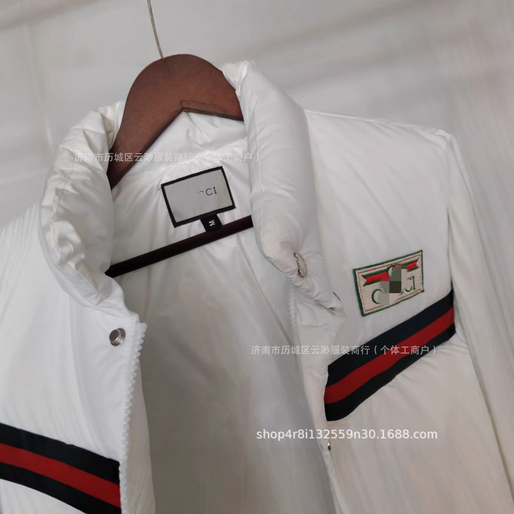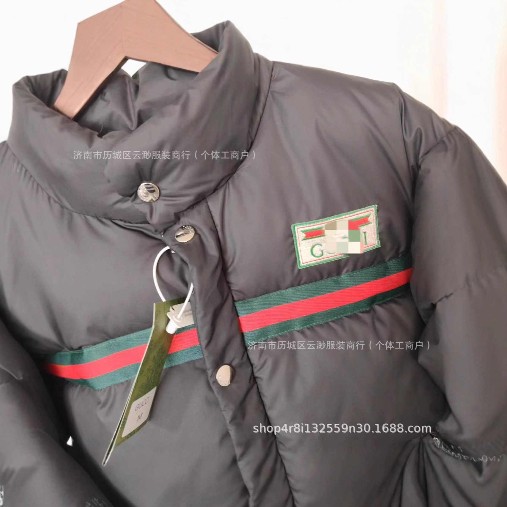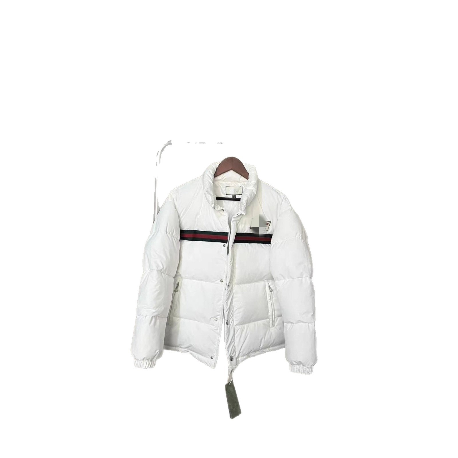 跨境新款冬季G家字母羽绒服防寒保暖时尚潮流条纹立领男女同款外