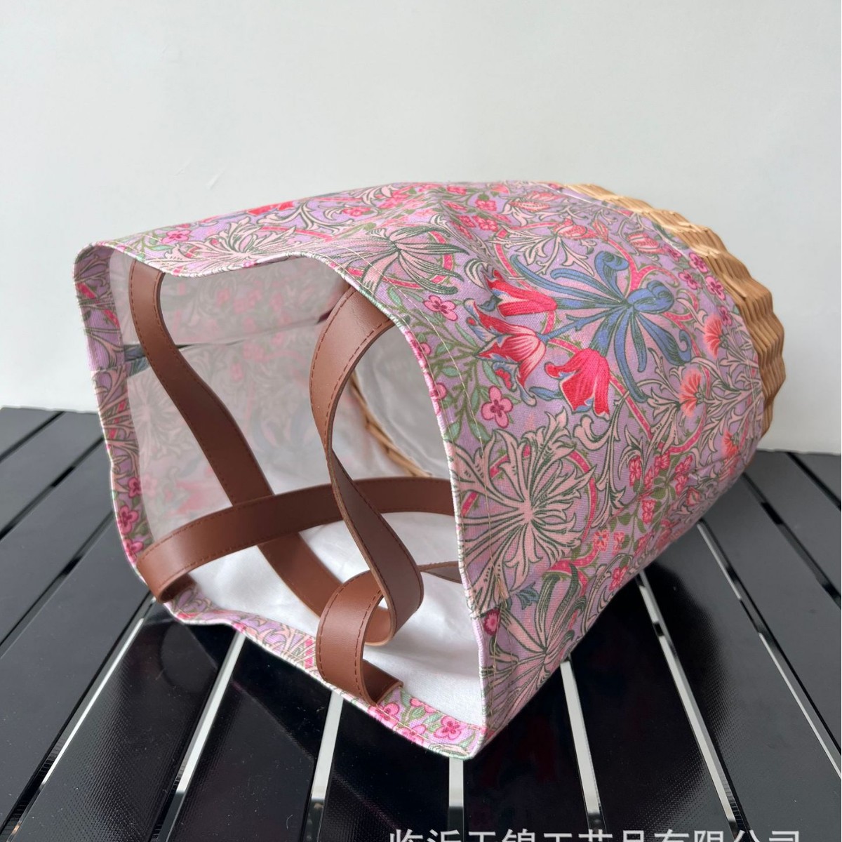 手提编织包时尚帆布拼接包藤编手提包夏季休闲通勤包包女野餐篮