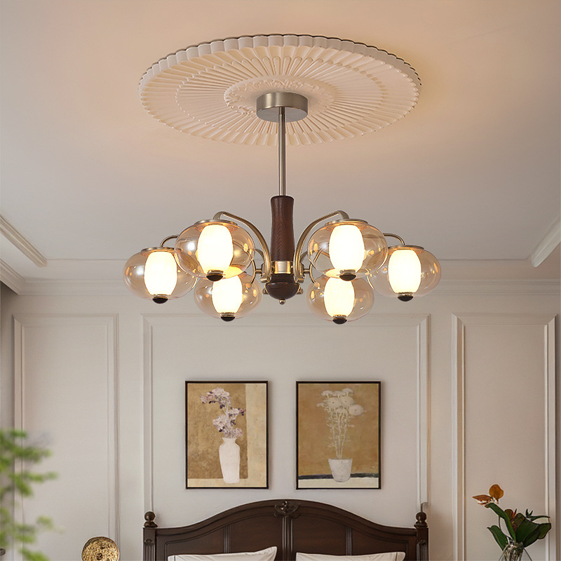 法式轻奢vintage复古美式胡桃木中古别墅房卧室房间客厅大厅吊灯