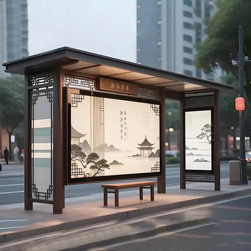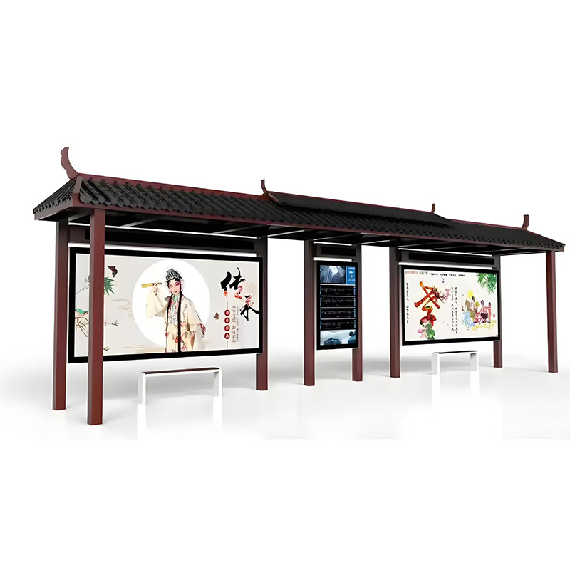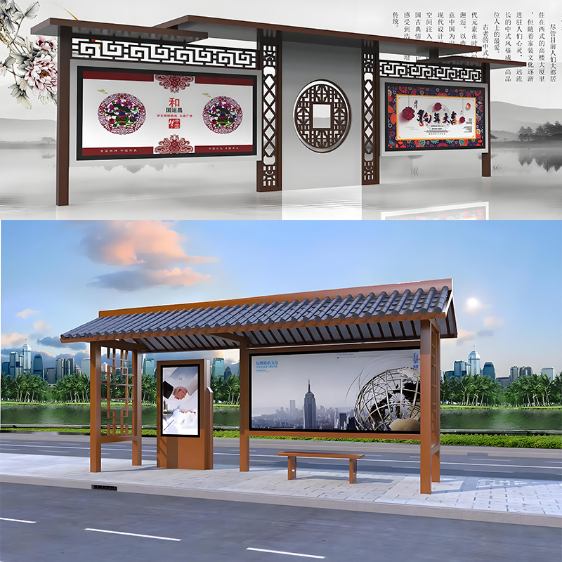 仿古公交站台候车亭不锈户外智能太阳能电子站牌厂家