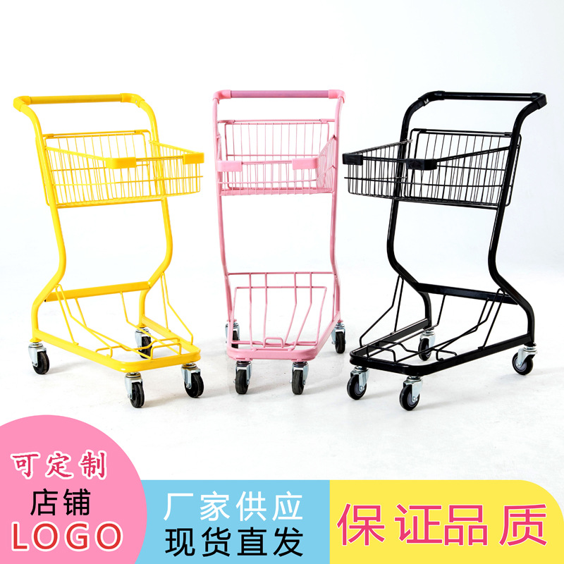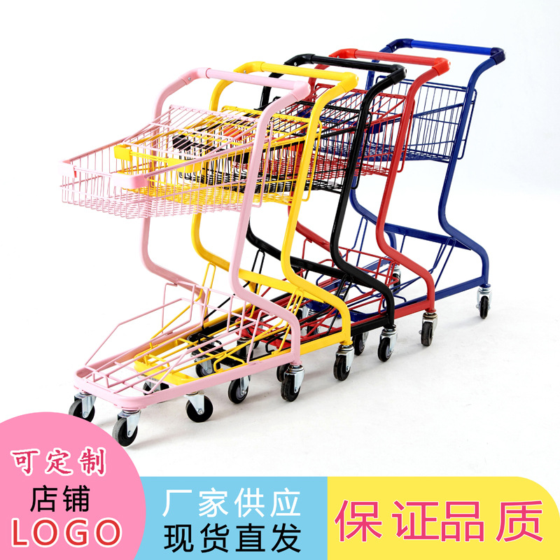 多功能超市抓娃娃手推车双层商场理货购物车网红摆地摊小推车家用