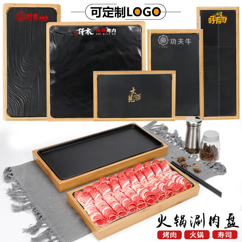 火锅店涮肥牛羊肉卷盘子密胺创意日式烤肉寿司平盘刺身大摆盘商用