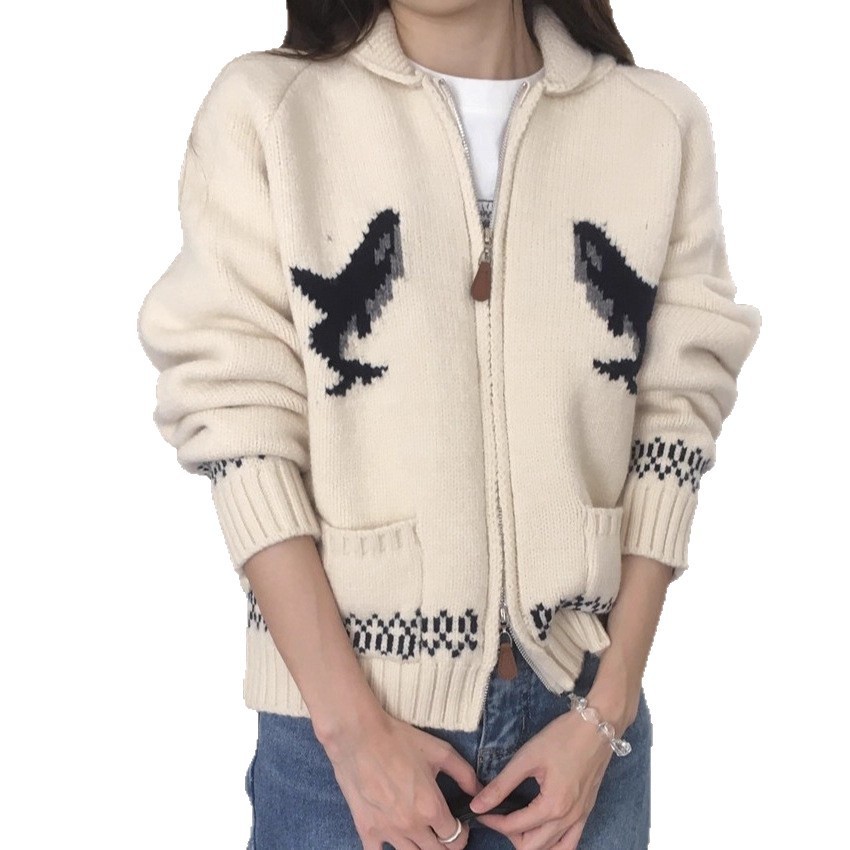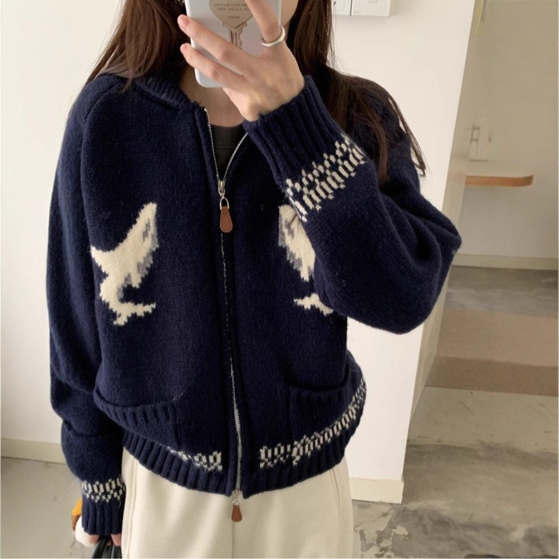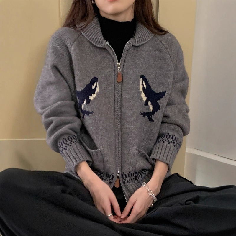 复古小众海豚设计感毛衣外套2025秋冬季新款宽松慵懒chic针织上衣