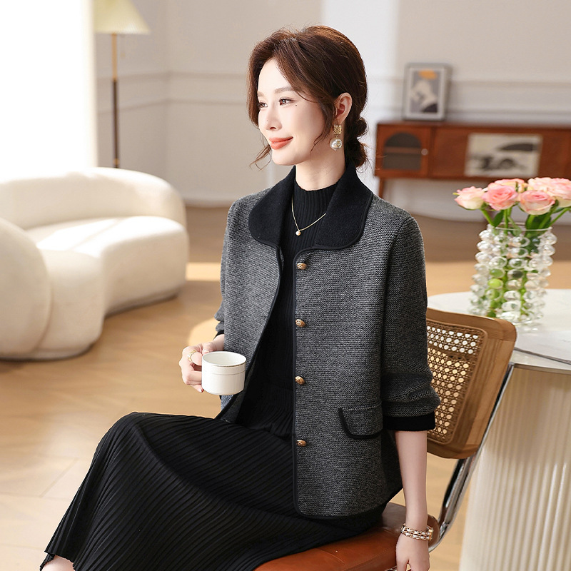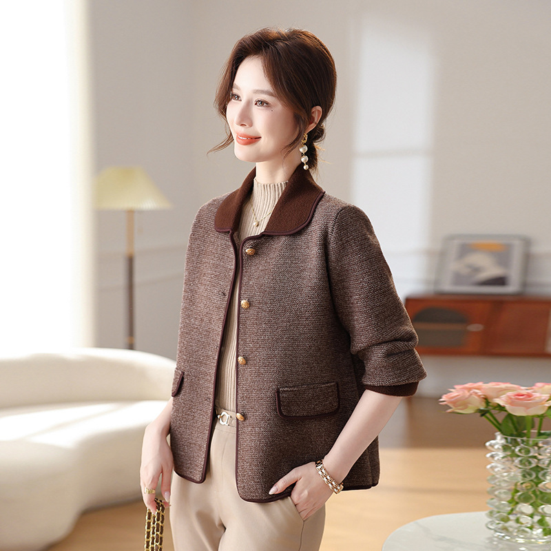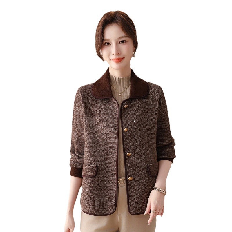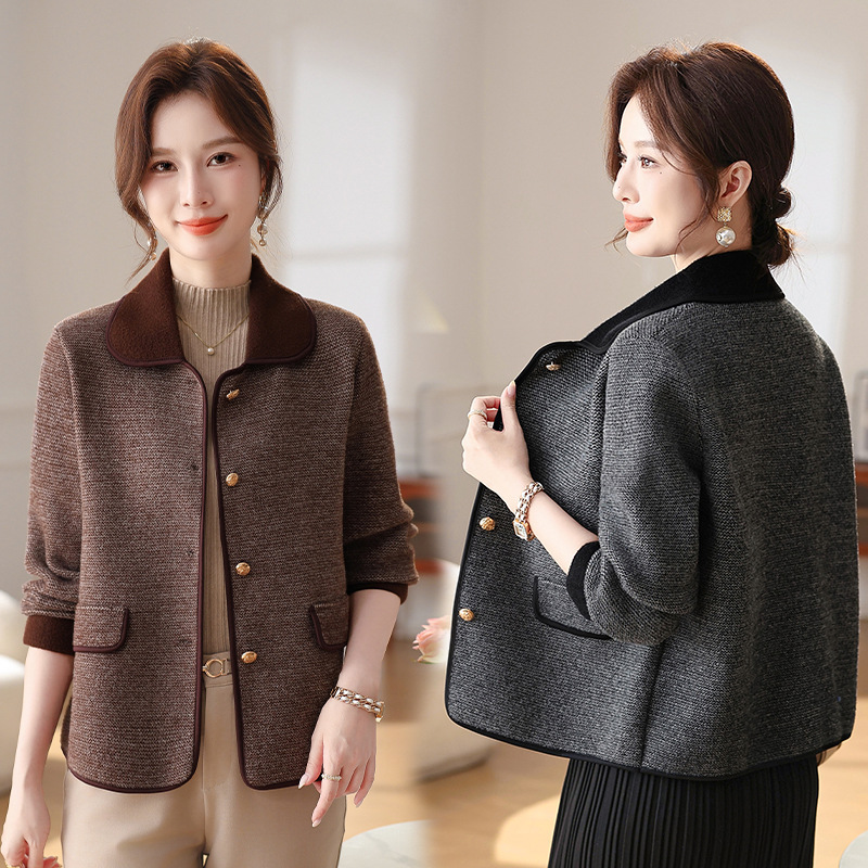 2025新款贵妇人中老年女春秋季小香风仿毛呢上衣