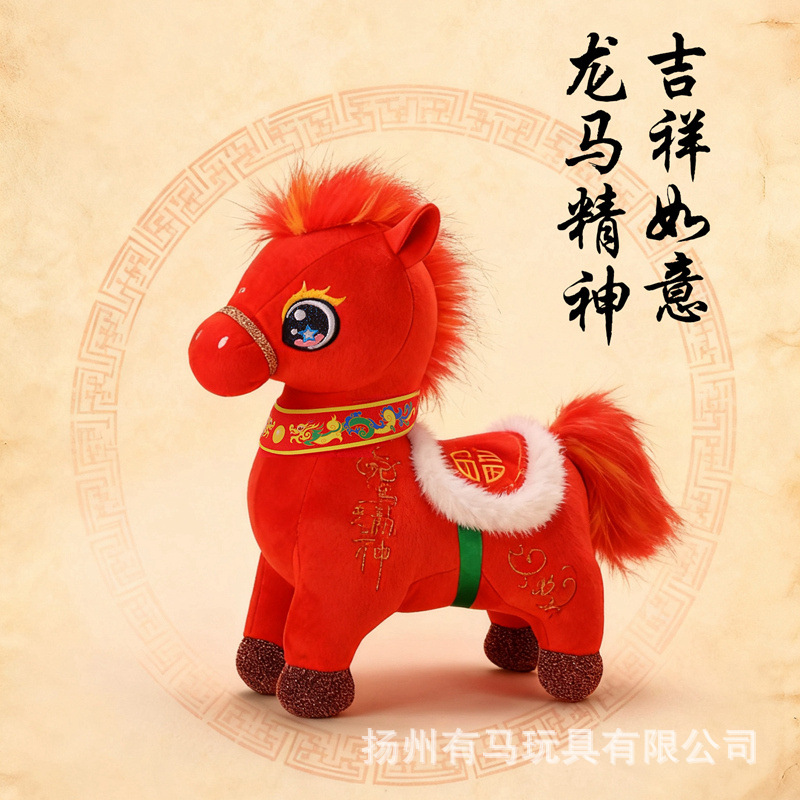 新品热卖品优龙马精神马年生肖吉祥物银行商务礼品毛绒玩具批发