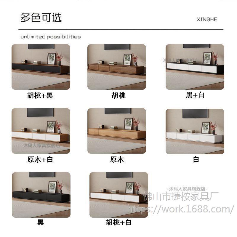 落地实木电视柜茶几组合小户型客厅简约现代高端胡桃背景墙电视柜