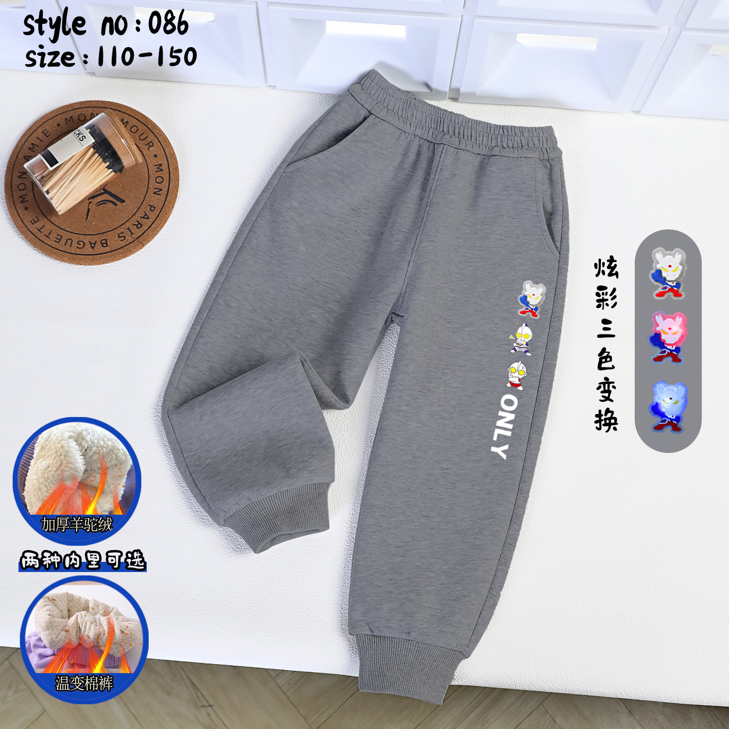 颜色深灰温变棉裤