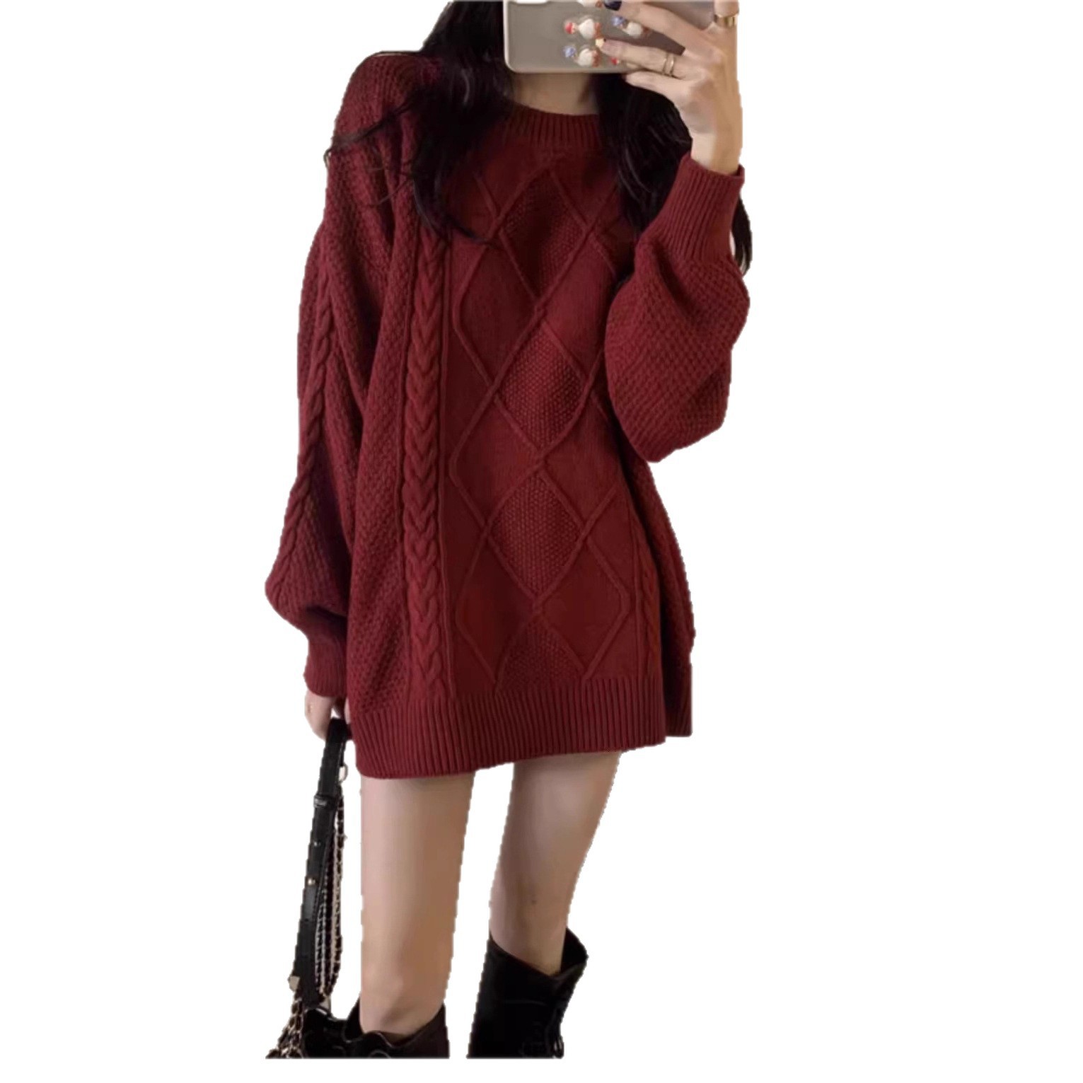 批发慵懒新年毛衣女秋季中长款遮屁股大朗针织跨年红色本命年上衣