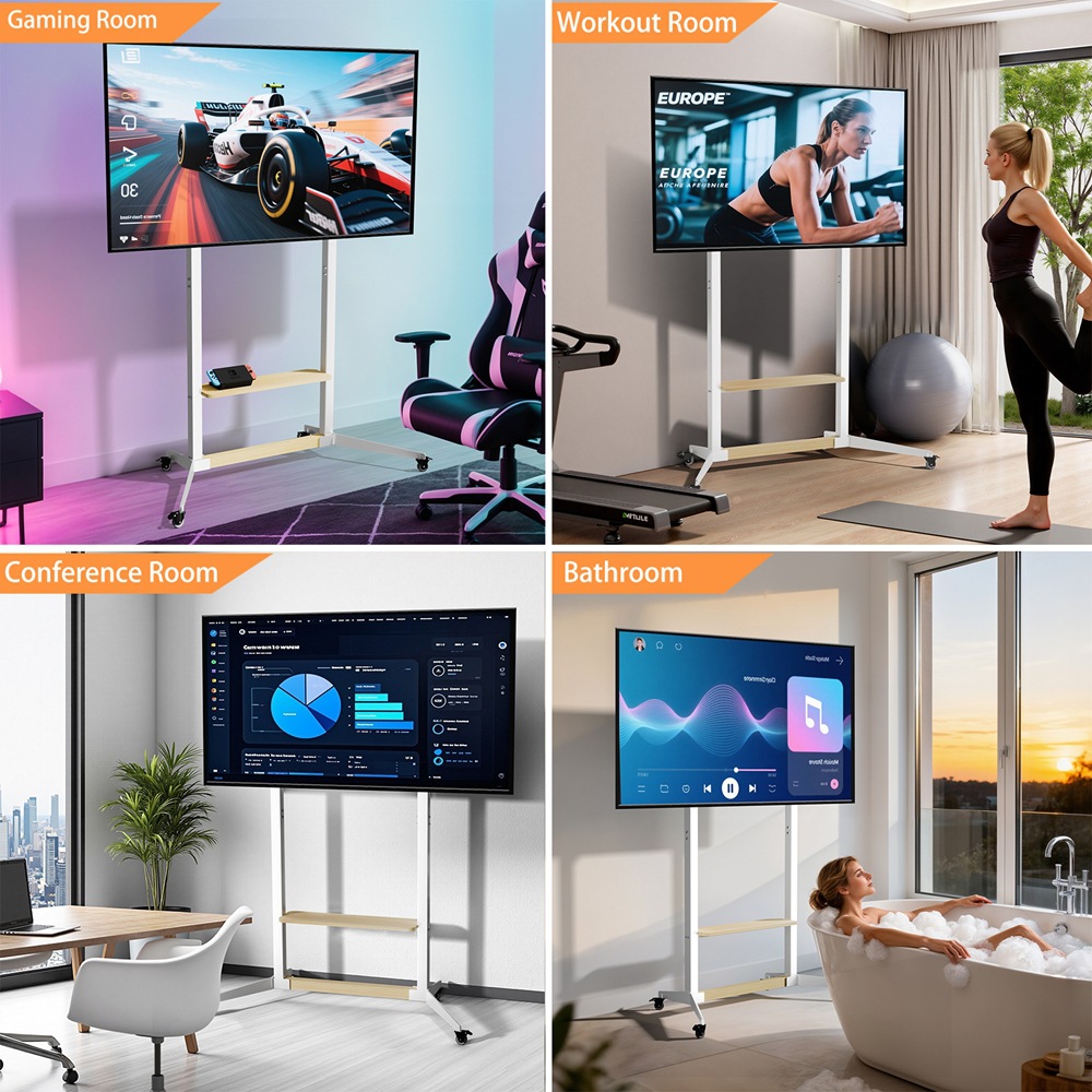UNHO大型落地电视支架承重100公斤适用100英寸电视支架可移动带轮