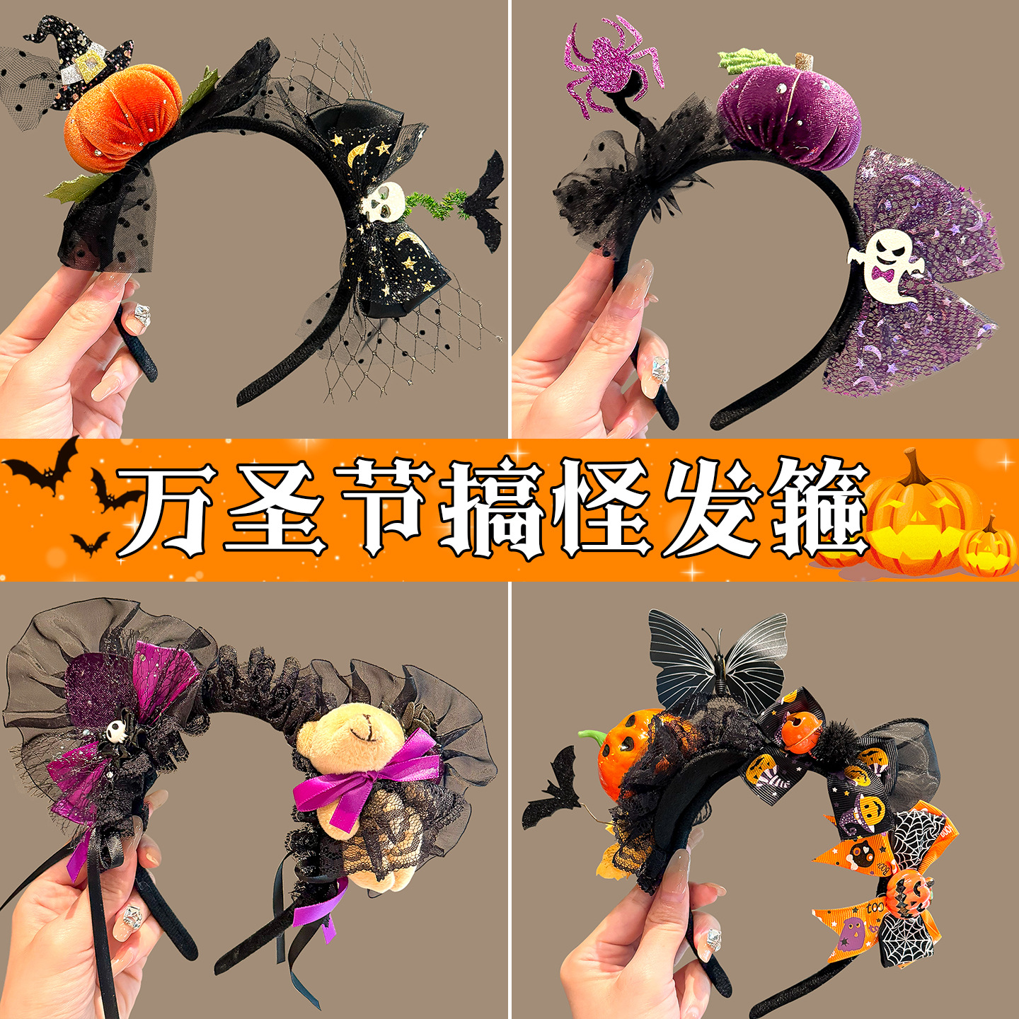 | 颜色 | 紫.蝴蝶结小丑发箍 | 颜色 | 黑.网纱南瓜骷髅发箍 |
