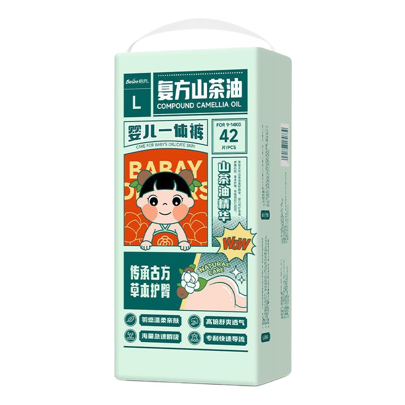 蓓秀民国风山茶油婴儿拉拉裤纸尿裤一体拉拉裤尿不湿拒绝红屁屁男