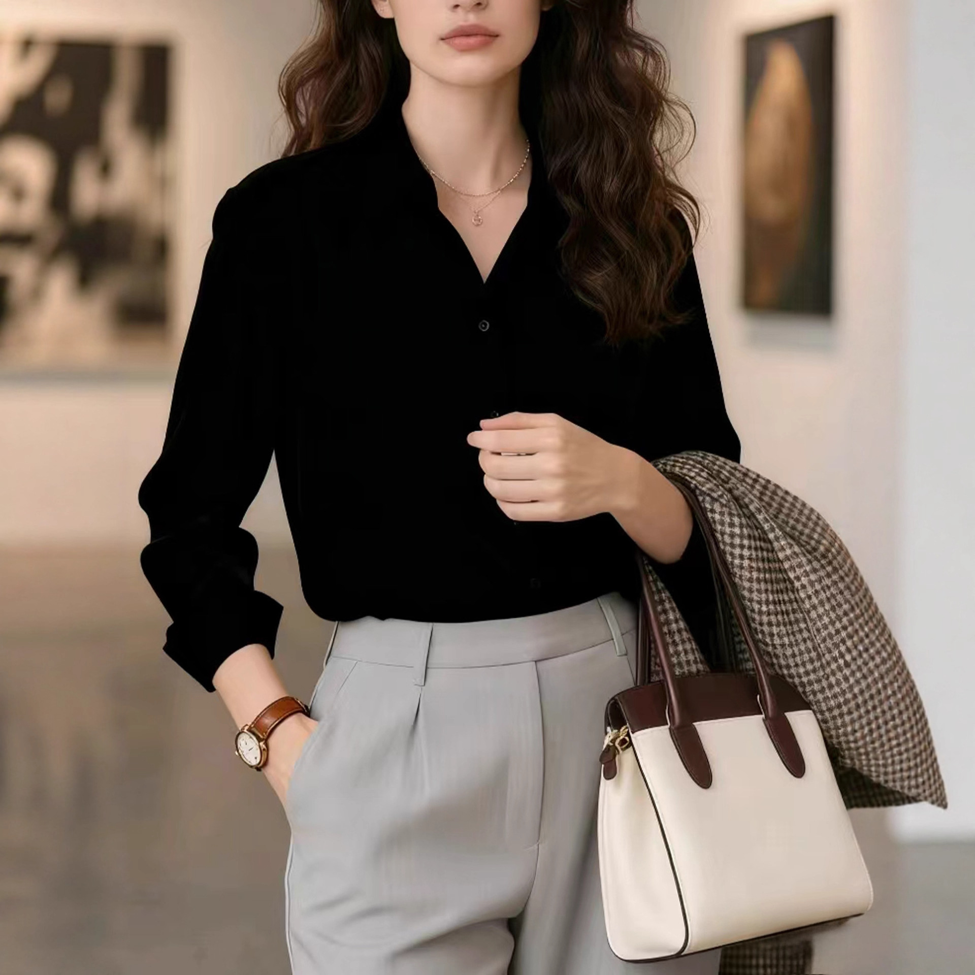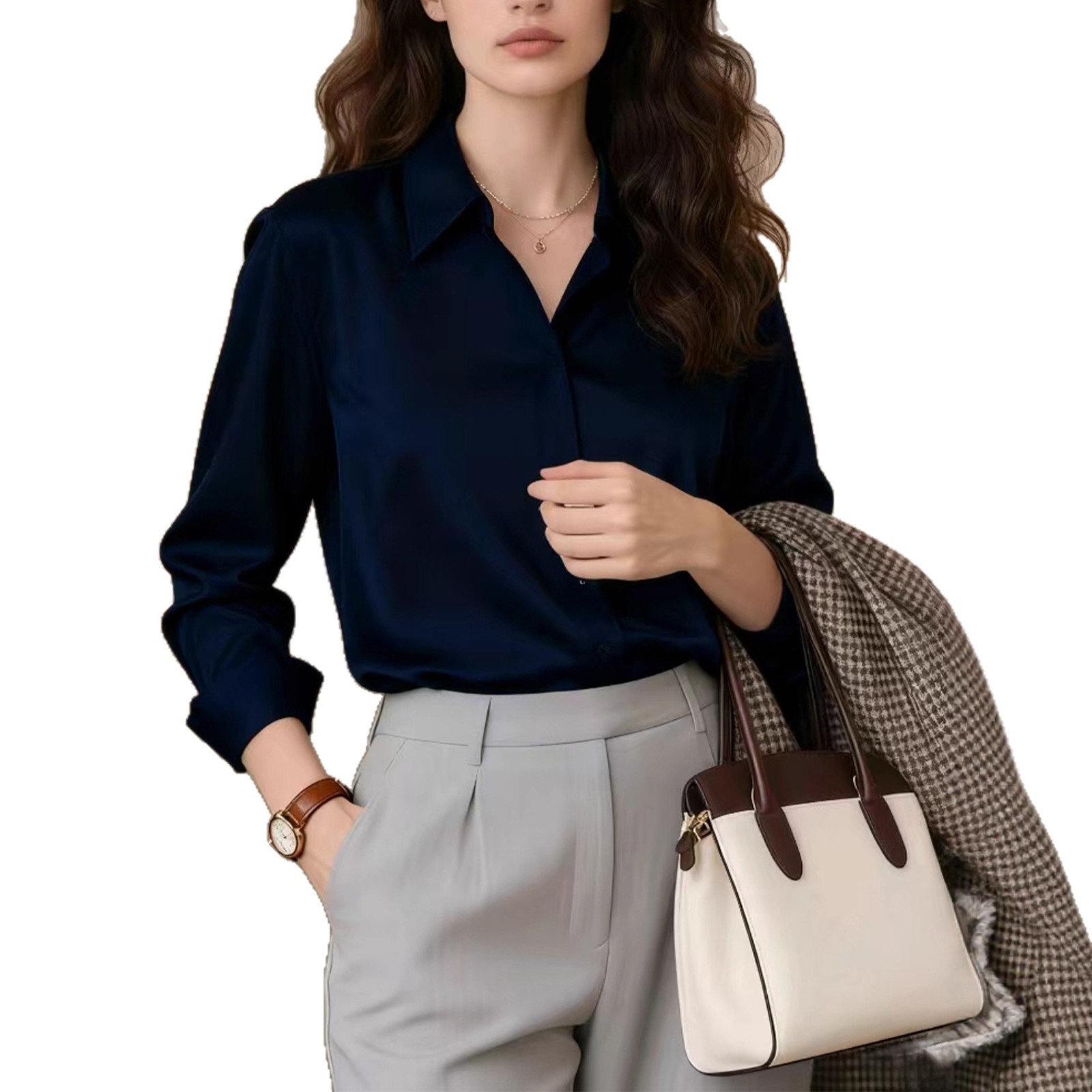 缎面长袖衬衫女2025秋季新款设计感小众轻熟港风女士衬衣现货批发