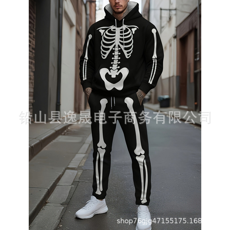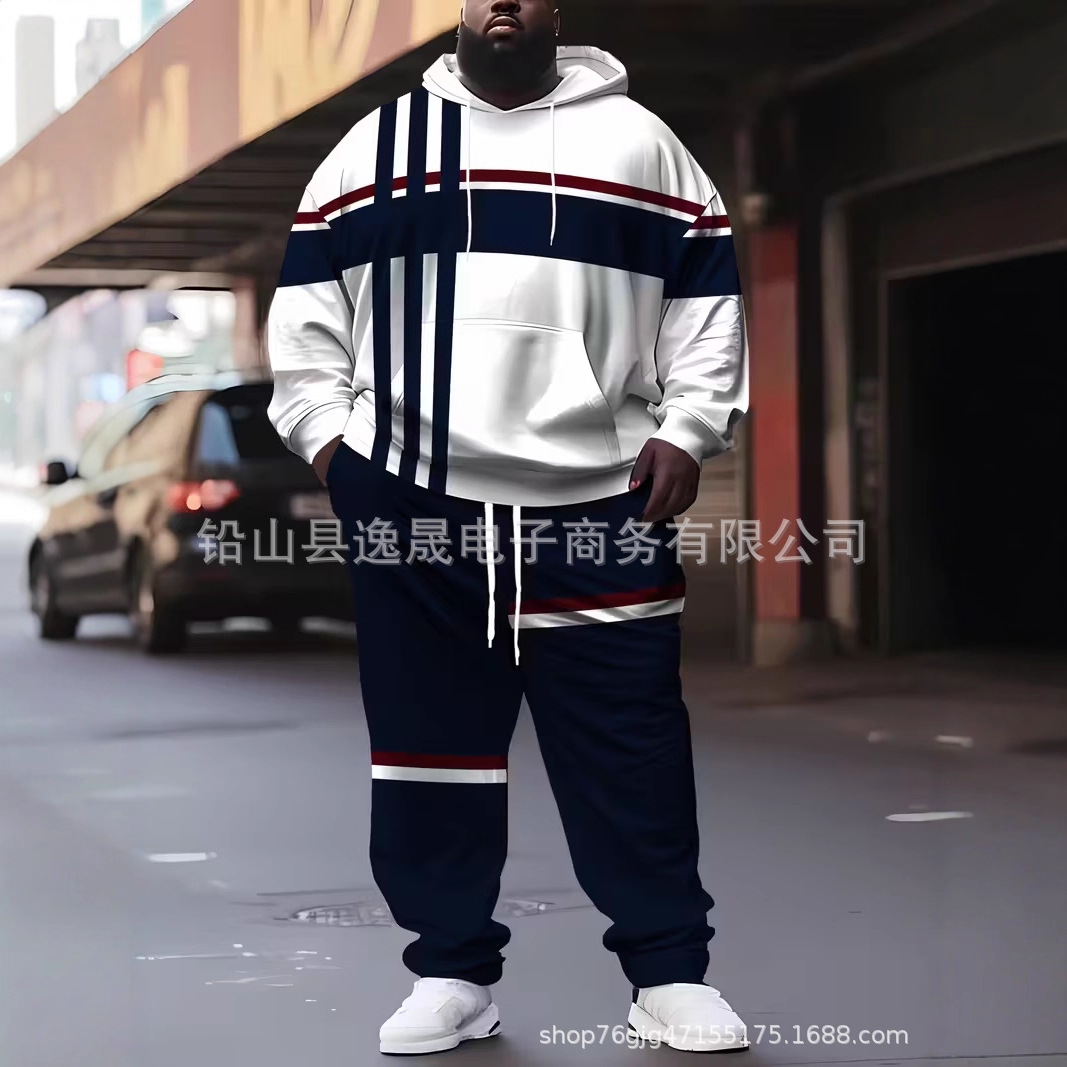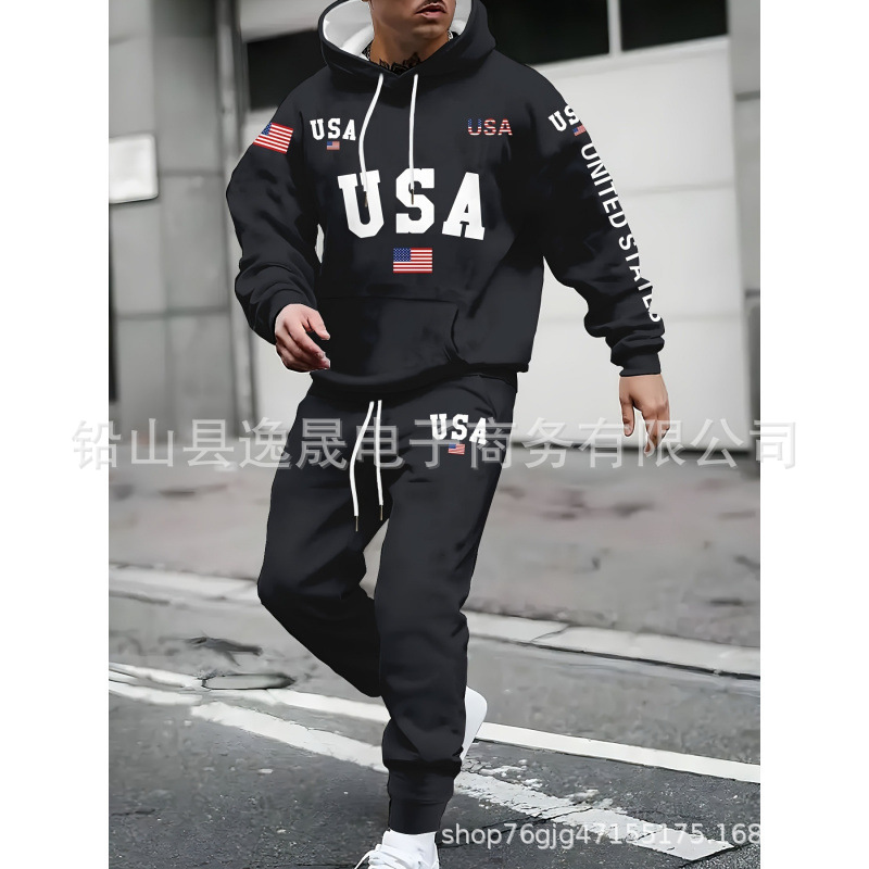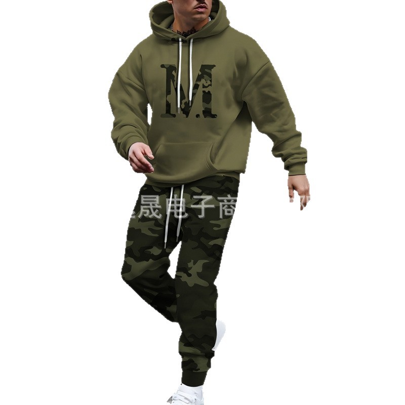 跨境外贸新款秋冬潮流欧美男士休闲舒适宽松运动连帽衫卫衣裤套装