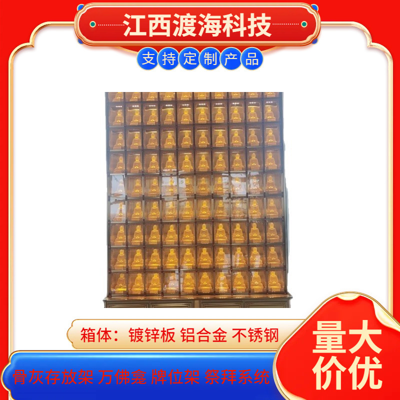 主营产品:骨灰存放架,骨灰盒寄存架,福寿架,万佛龛,牌位架,殡仪馆祭拜系统,寺院智能化管理系统、龙骨吊顶、智能骨灰寄存架