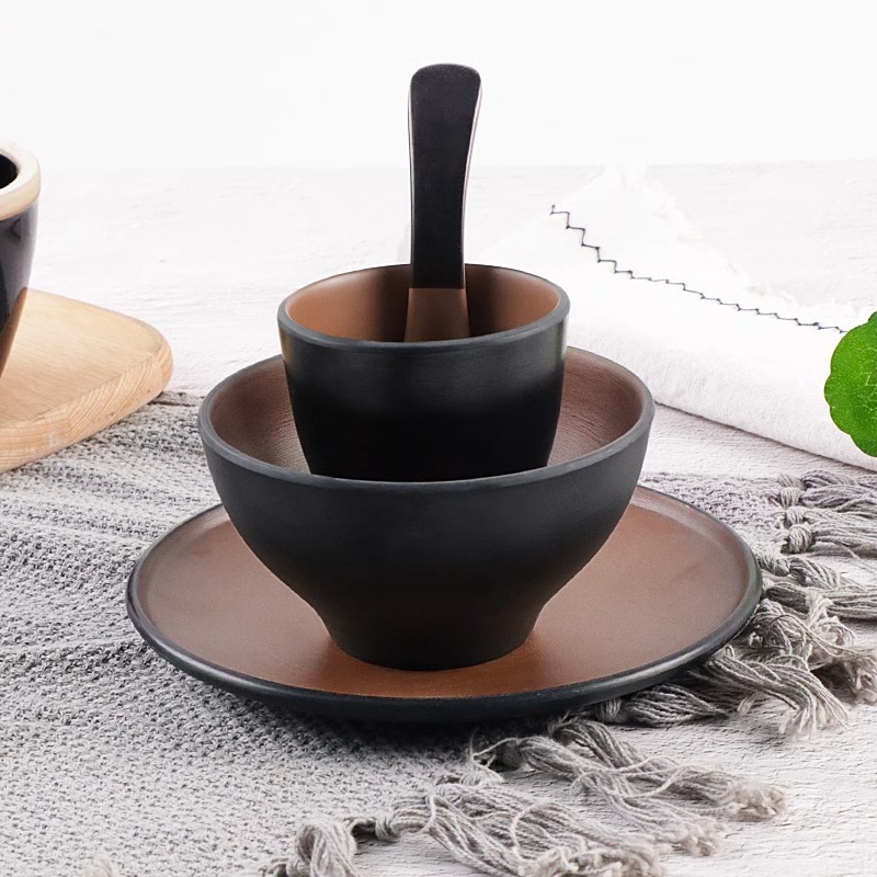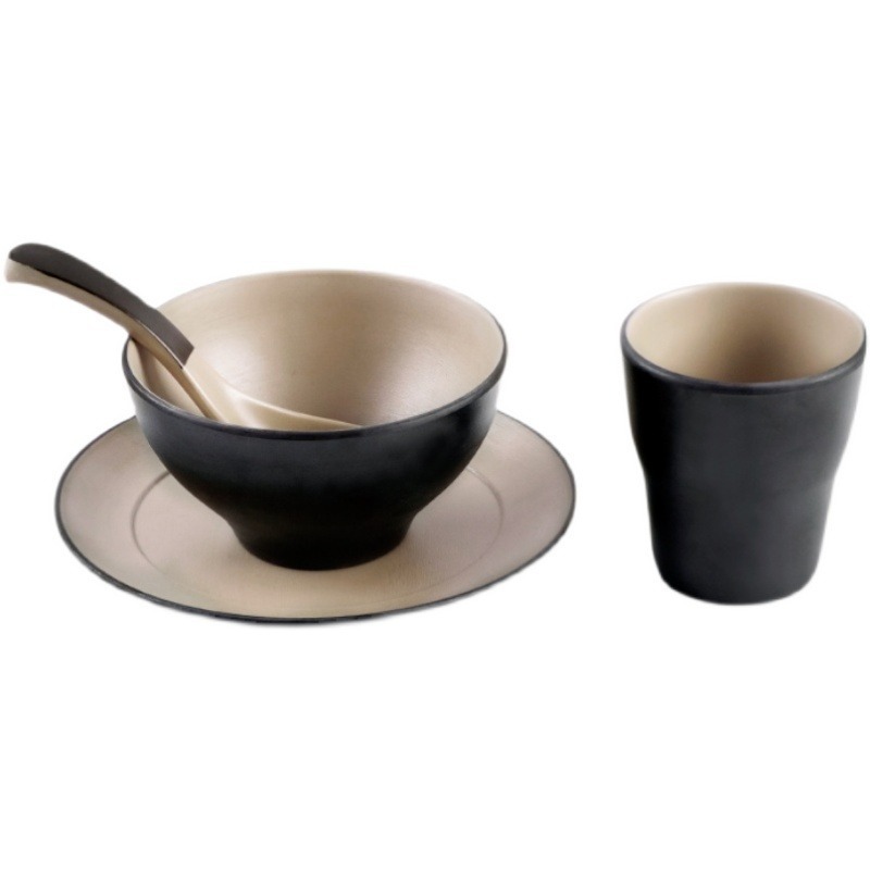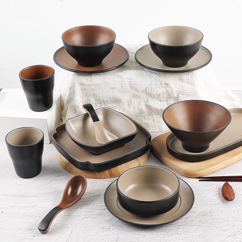 复古日式四件套餐厅饭店火锅摆台餐具密胺仿瓷盘子碗杯勺套装商用
