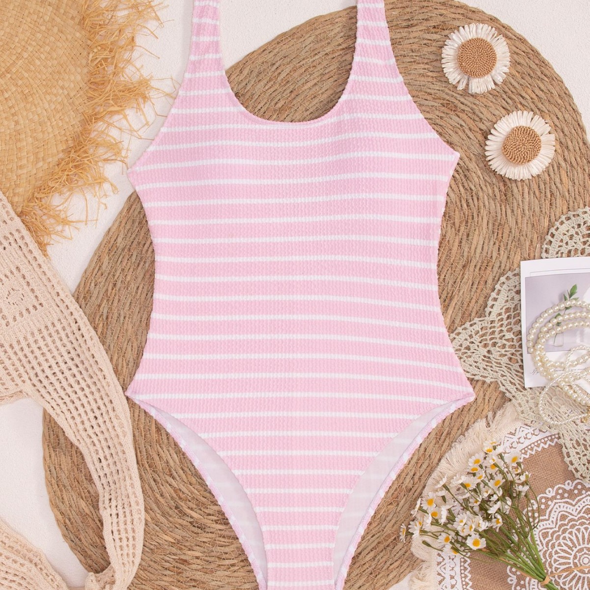 欧美跨境条纹紧身连体泳衣女清新时尚性感连体速卖通连体比基尼女