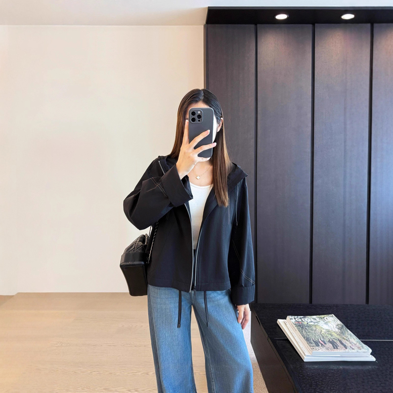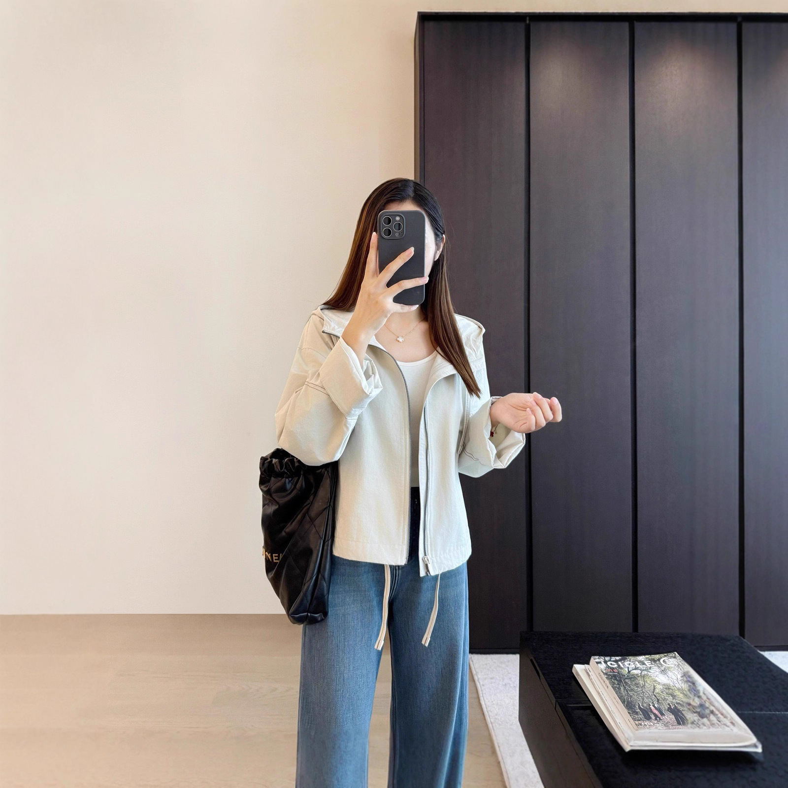 高端LU家宽松休闲防风连帽工装夹克小个子短款风衣冲锋衣外套女秋