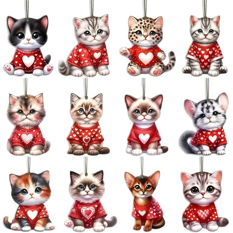 跨境热卖小猫木质挂饰套装各种节日装饰用于圣诞节新年木质工艺品