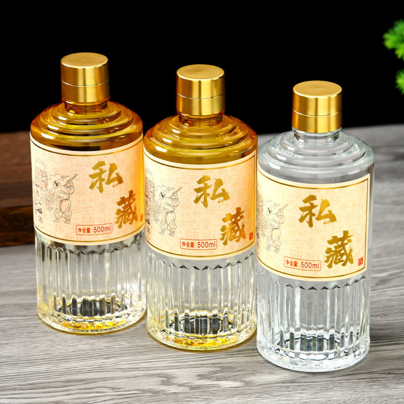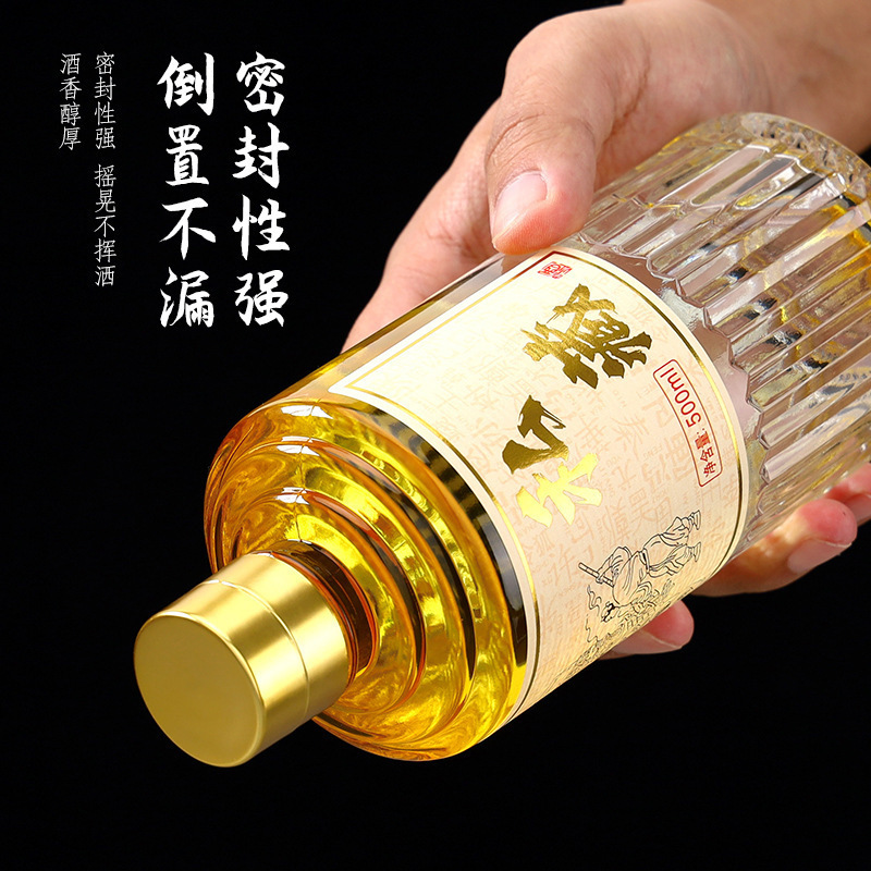 高档500ml白酒瓶私藏水晶玻璃瓶透明酒瓶果酒密封分装瓶空瓶