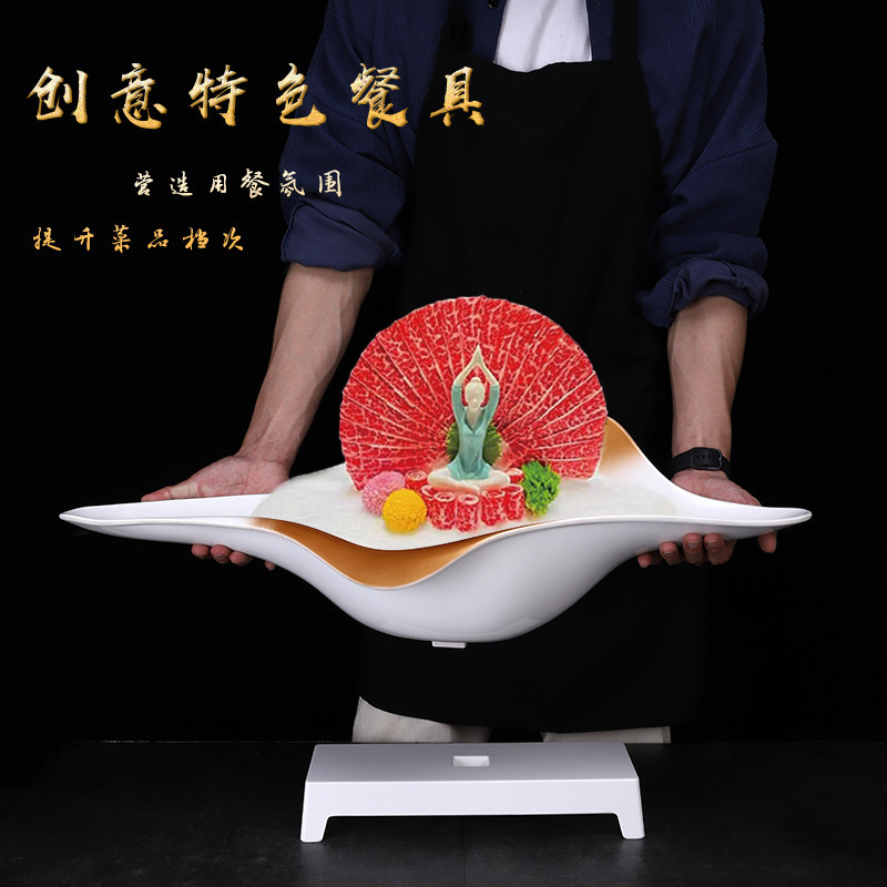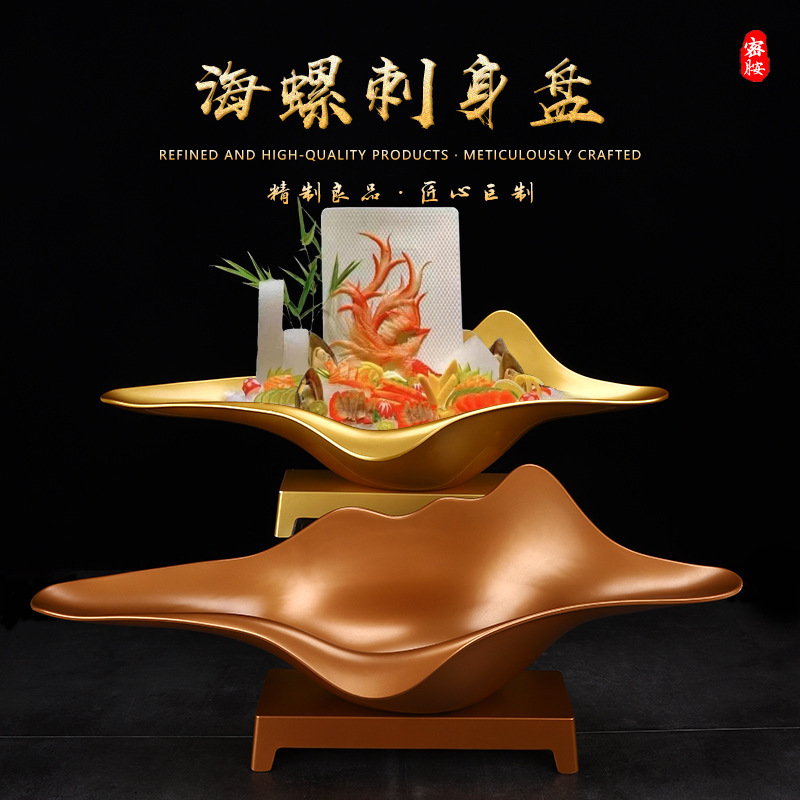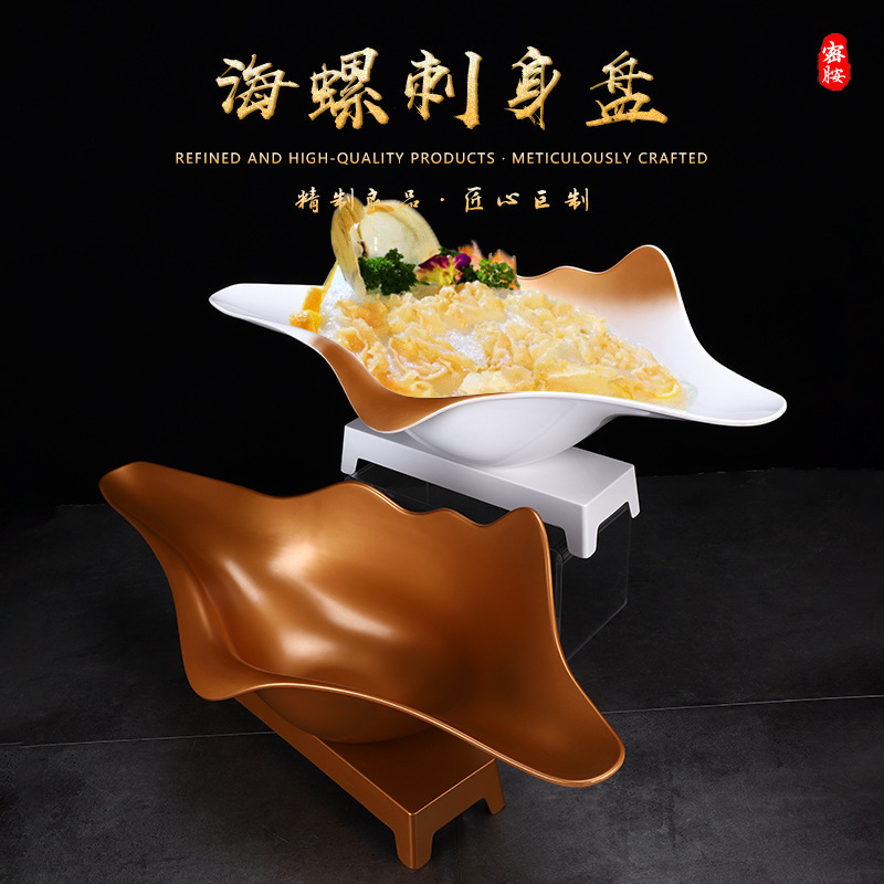 日式刺身专用海螺刺身盘酒店冒烟干冰盘火锅店三文鱼高档海鲜拼盘