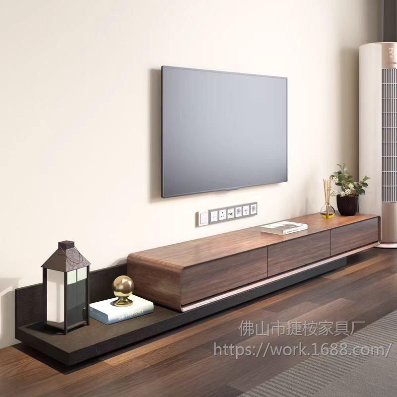 颜色可伸缩电视柜(胡桃+胡桃套黑)