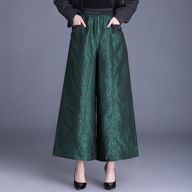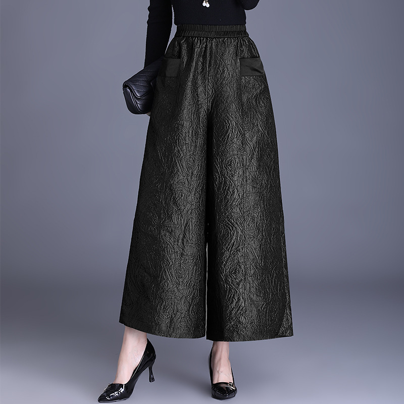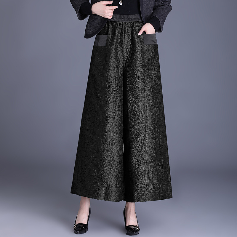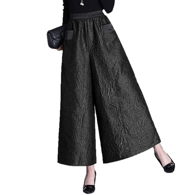 胖妹妹大码高腰裤子喇叭裤重磅提花裙裤九分百搭阔腿休闲裤