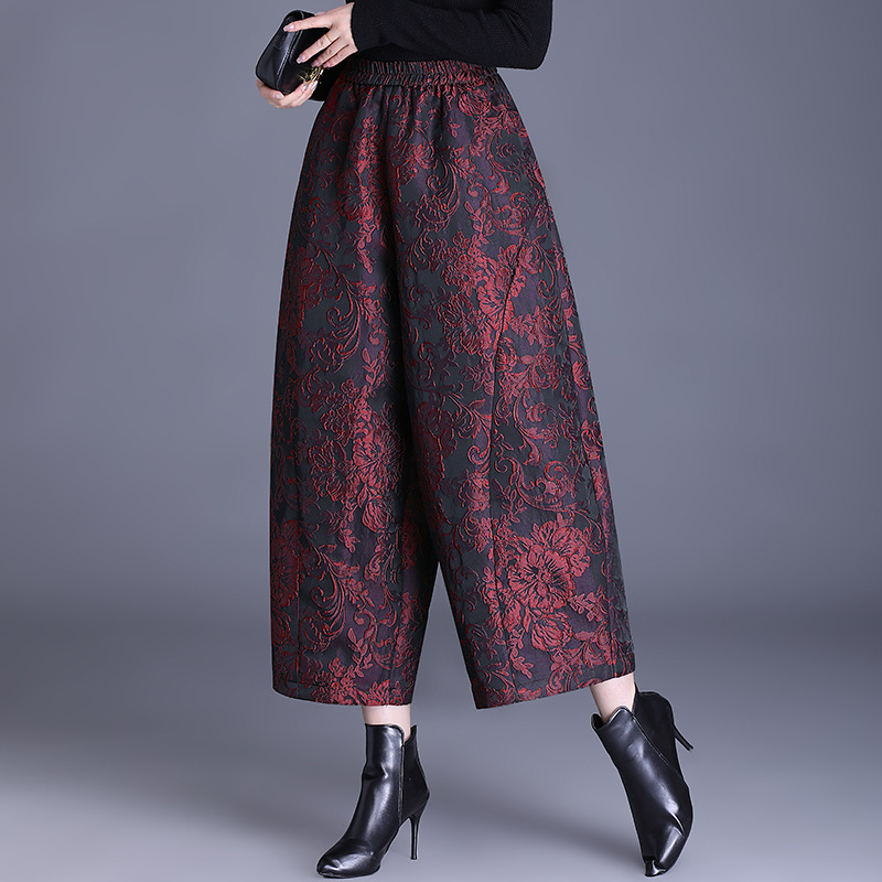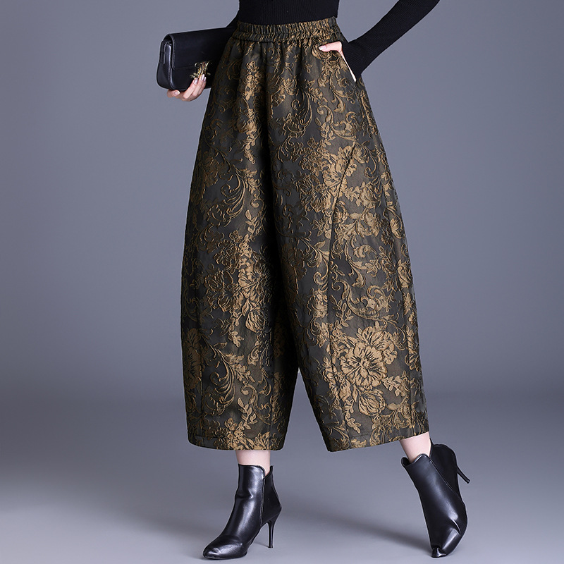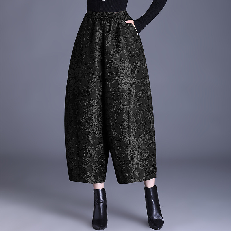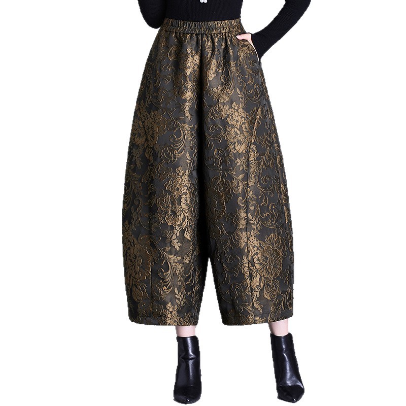 2025秋季新款女宽松灯笼裤妈妈高腰休闲提花茧型萝卜九分裤批发