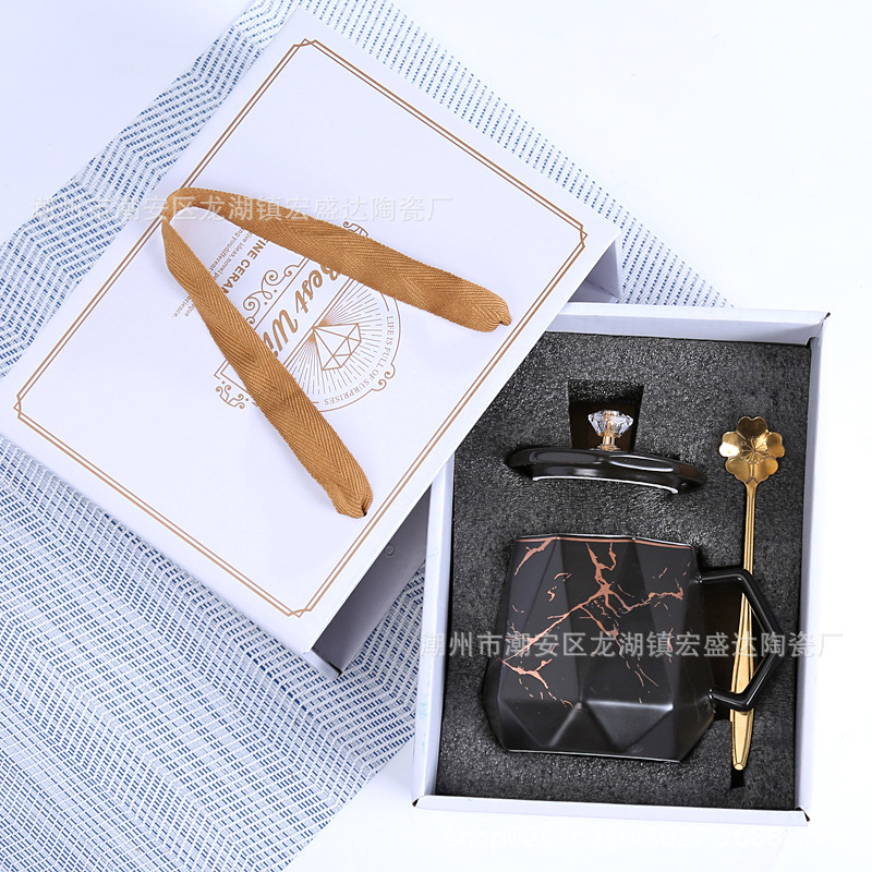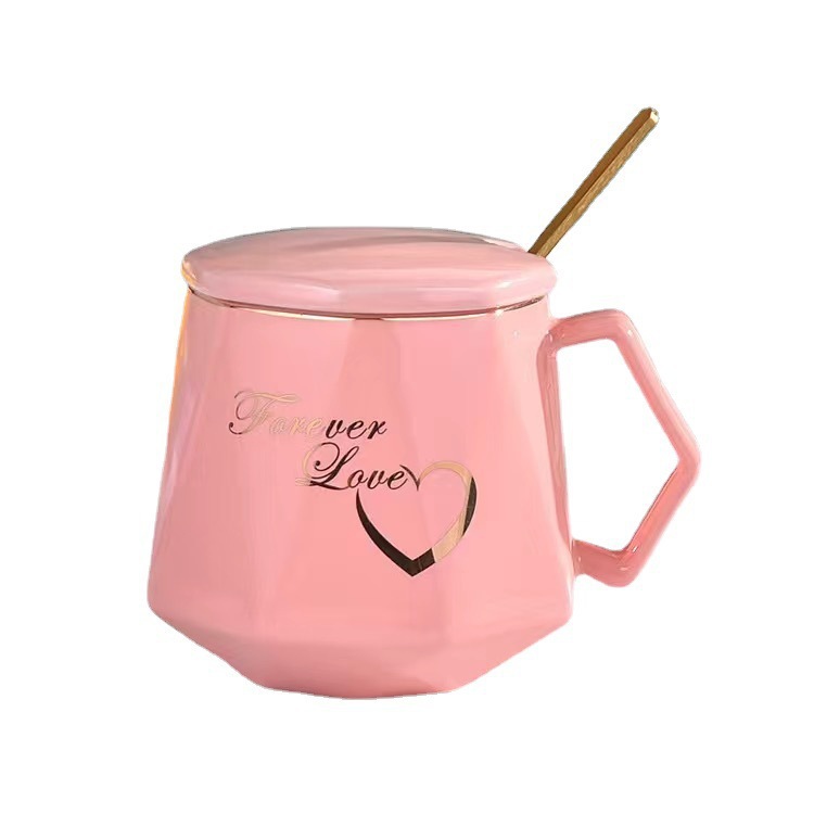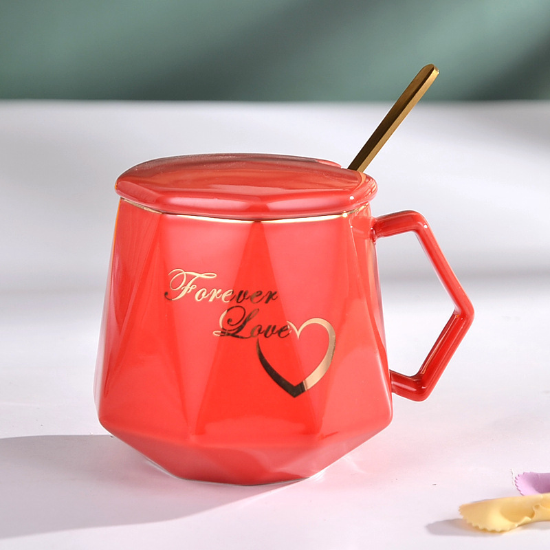 创意马克杯带盖勺 情侣陶瓷杯 活动礼品结婚回礼伴手礼水杯印Logo