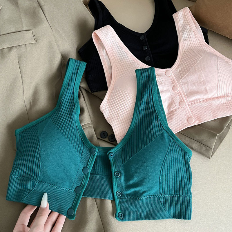 新款无缝前开纽扣裹胸美背妈妈孕妇款文胸带胸垫宽肩带抹胸内衣女