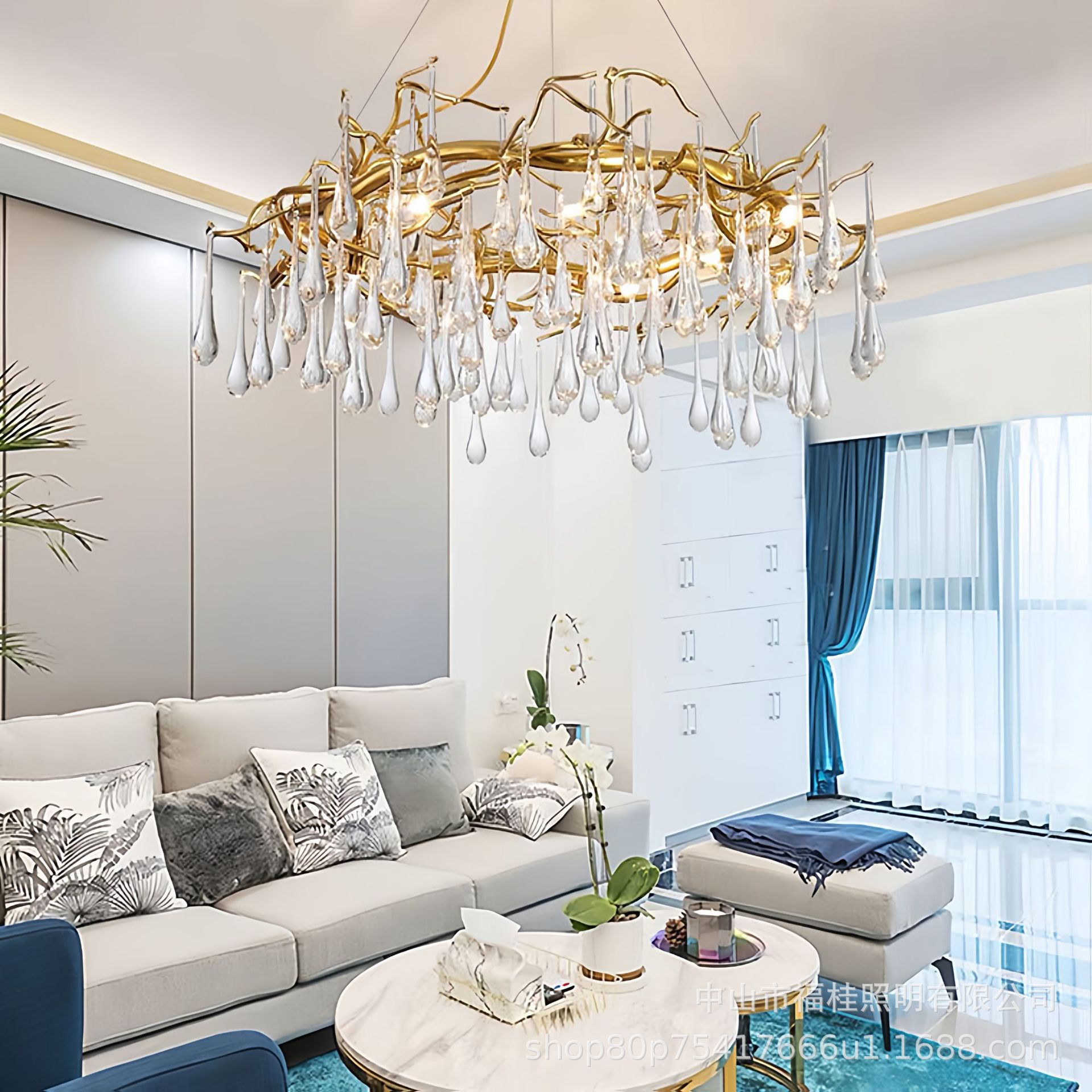 2025款后现代法式水晶吊灯轻奢简约奢华圆形个性树枝餐厅客厅灯具