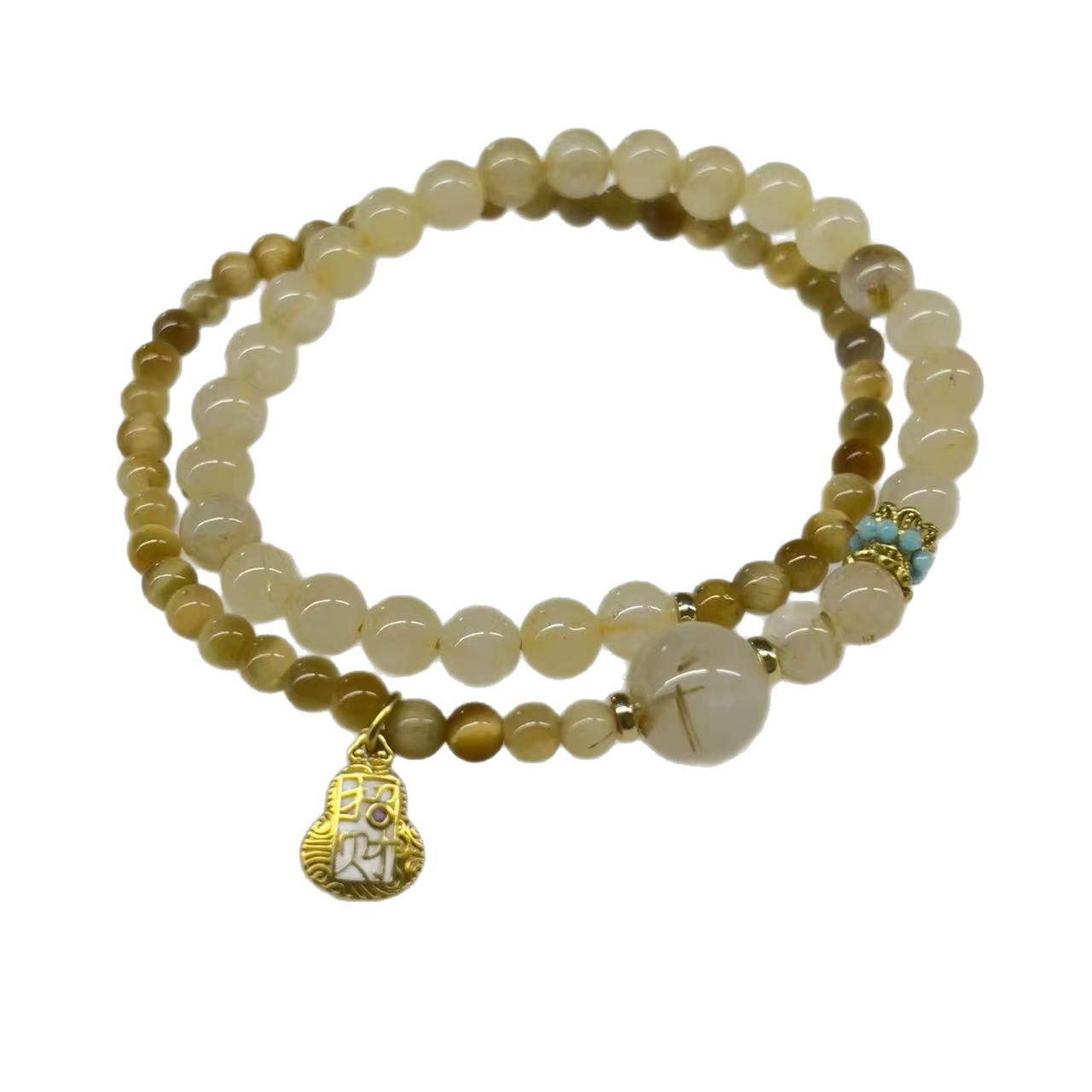 新款天然金发晶金虎眼招财串珠手链双圈叠戴时尚百搭高级感手串女