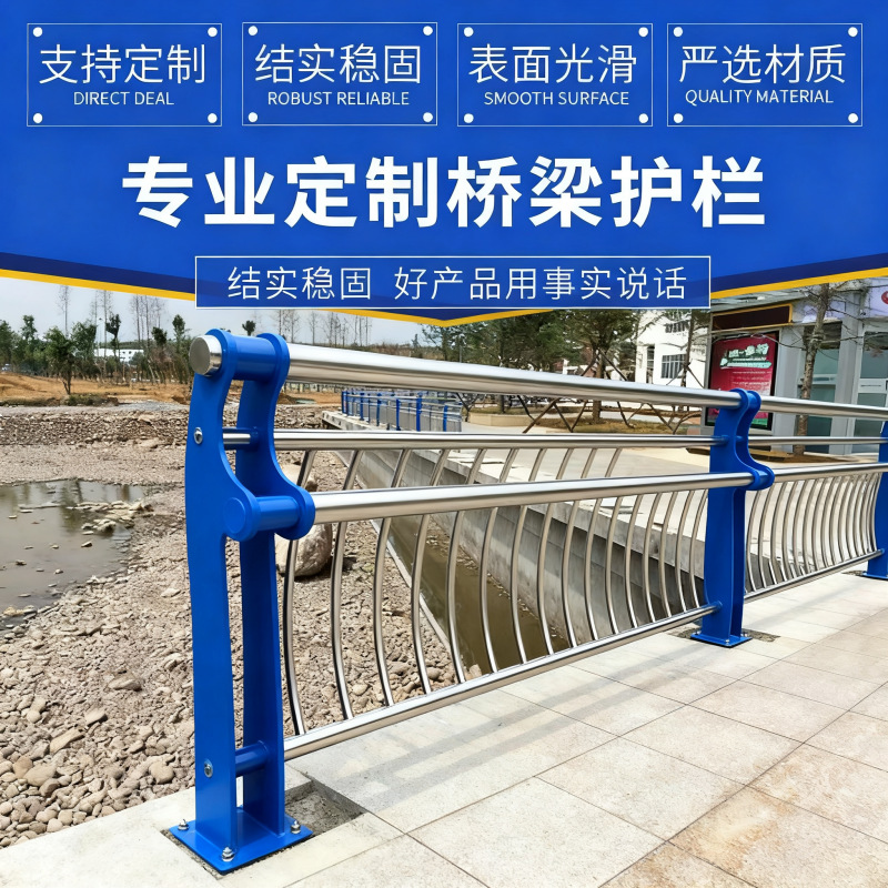 不锈钢市政河道护栏天桥灯光人行道防护栏杆立柱扶手桥梁防撞护栏
